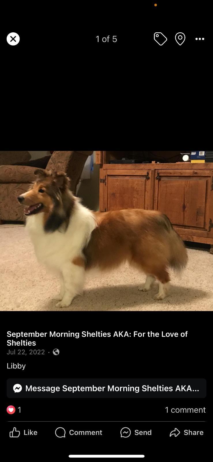 Libby is a female Shetland Sheepdog about 5 years old. Carefully selected as a great representative of her breed, Lisa decided to make her part of their program. Lisa has passed Good Dog’s screening process, which involved a review of their breeding practices, environment, and the mental and physical health of their dogs.