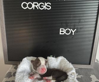 Our Pembroke Welsh Corgi puppies include red, sable, black and tan, and blue. Cardigan Welsh Corgi puppies include brindle and white, liver and white, blue merle and white, and black and white. American Corgi puppies include blue merle and white and brindle and white. Colors will vary depending on the parent dogs.