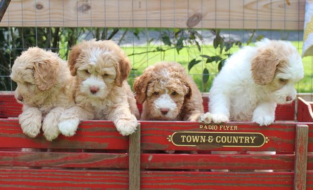 Our puppies include miniature and medium sizes. Sizes will vary depending on the parent dogs.
