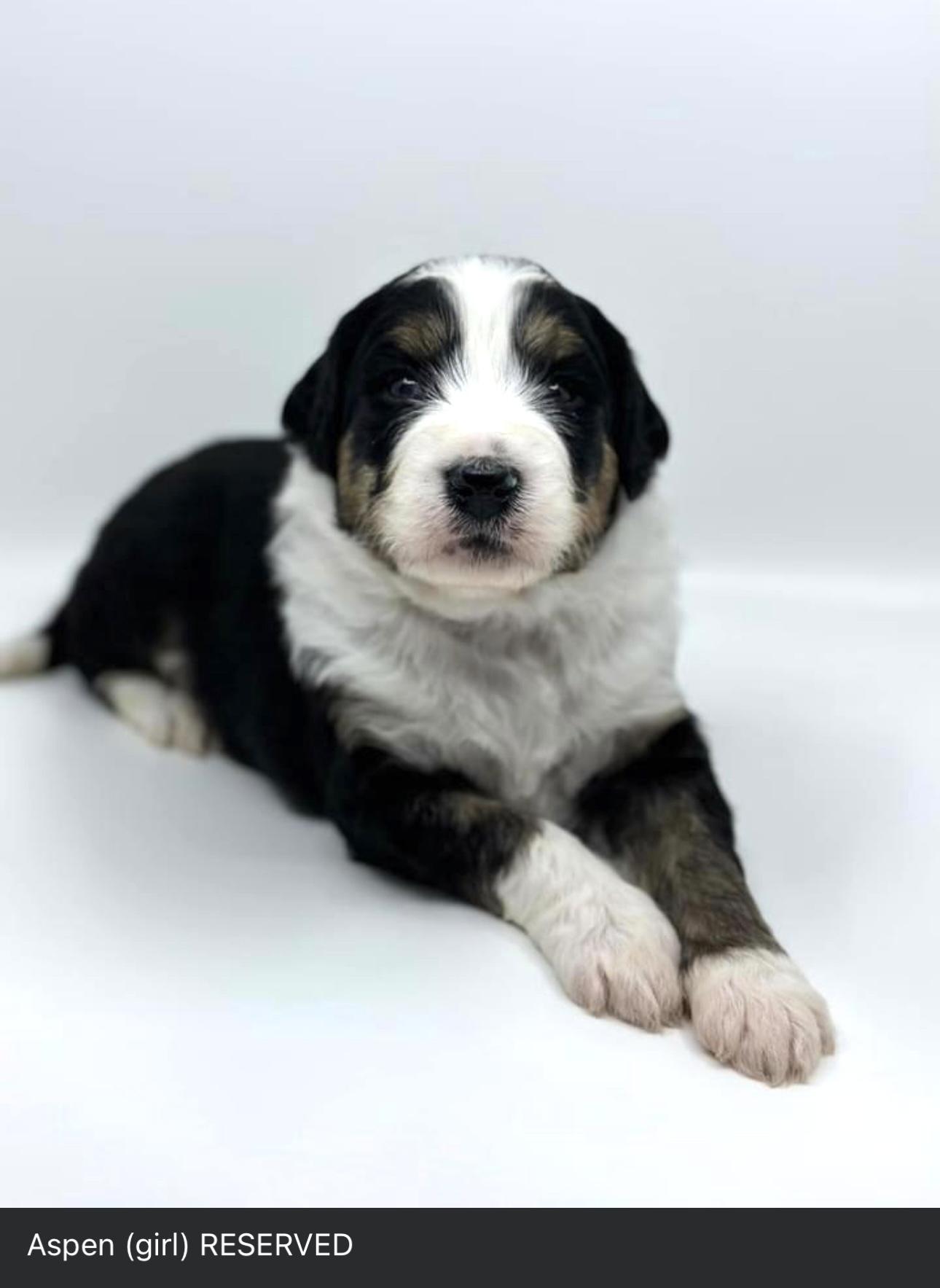 Molly is a female Bernedoodle. Carefully selected as a great representative of her breed, Ginger & decided to make her part of their program. Ginger & has passed Good Dog’s screening process, which involved a review of their breeding practices, environment, and the mental and physical health of their dogs.