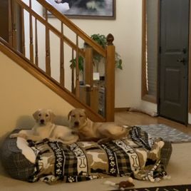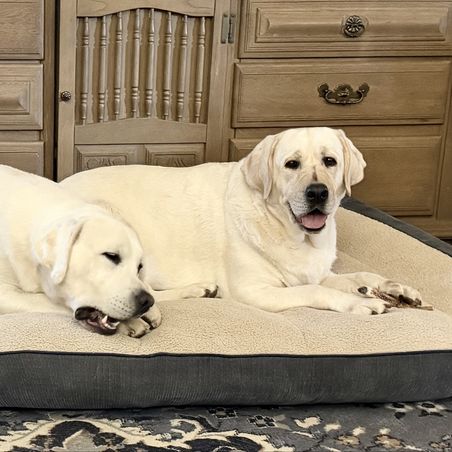 Ever since I was a child, one of my dreams was to breed Yellow Labradors. I got my first yellow lab, Josie, when I was a teenager and she only made my love for Labradors grow. She was our best friend and part of our family and lived a long happy life. She got to spend a lot of time with my children in her old age which was very special. In my early 30's I finally had the time and resources to research and learn about health testing and breeding labradors. Once I felt that I knew enough to get started as a responsible breeder, I began to search out and find the dogs that I wanted to start my breeding program with. Lola and Sarge were the first two. Now that Sarge and Lola are retired, we have three light yellow English Labradors that will be the future of Serenity Labradors.