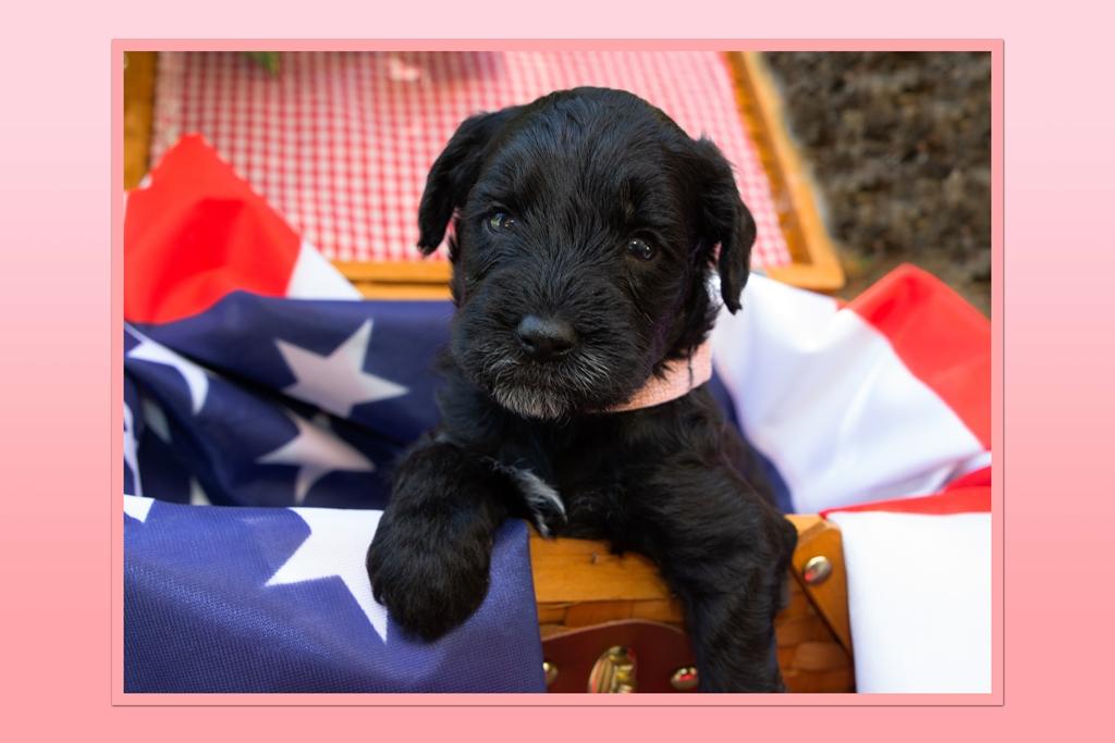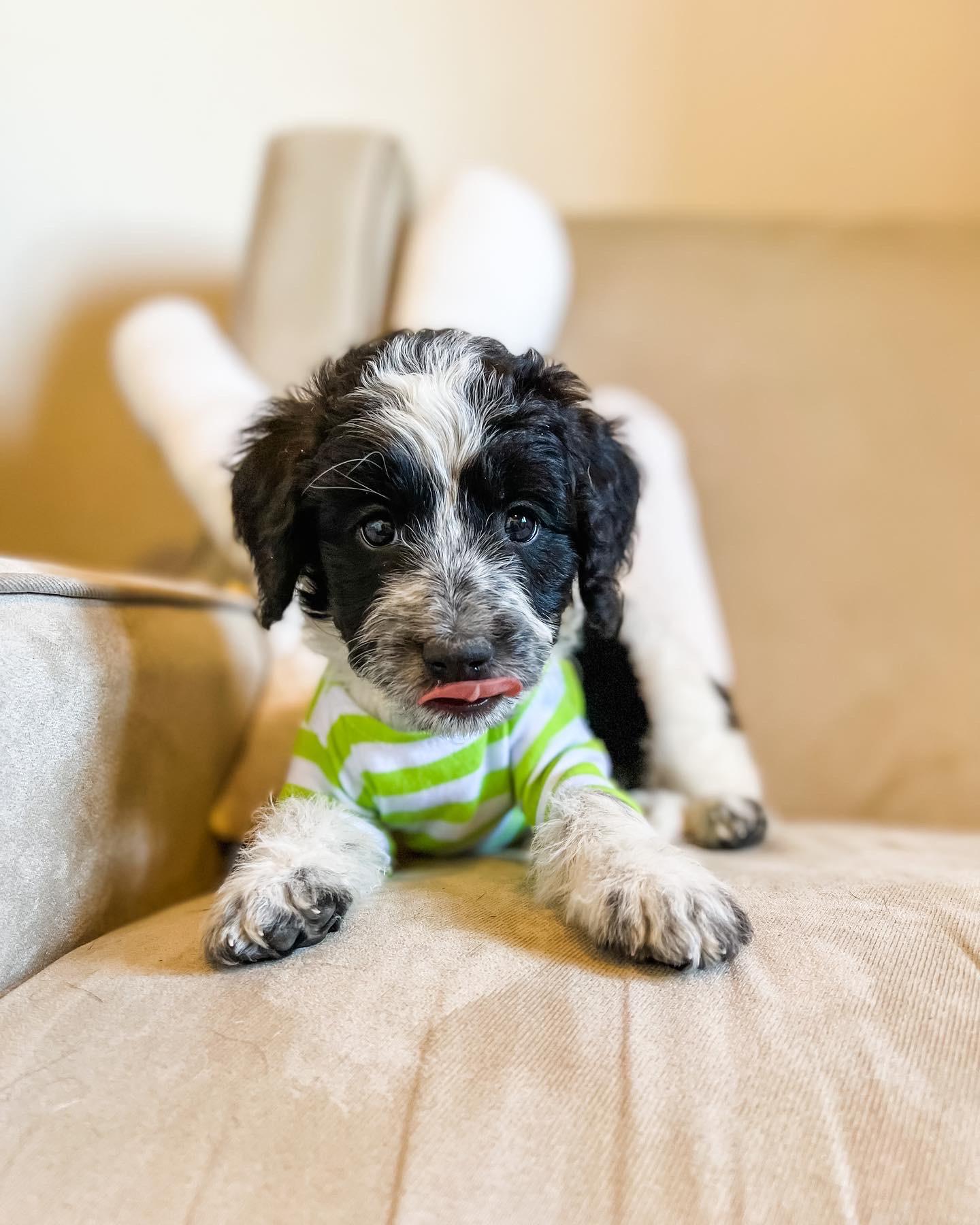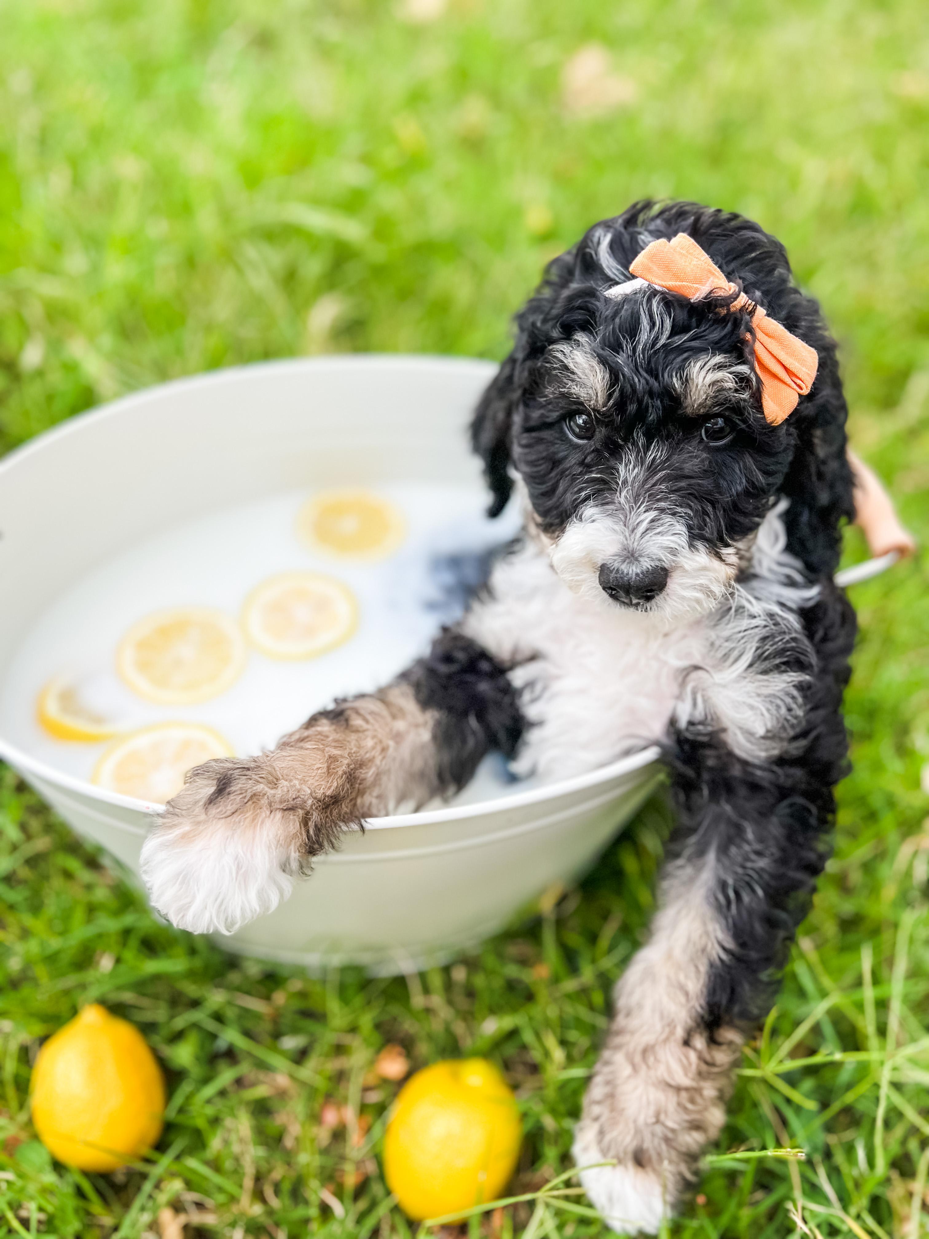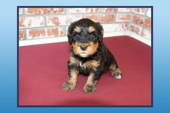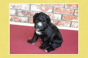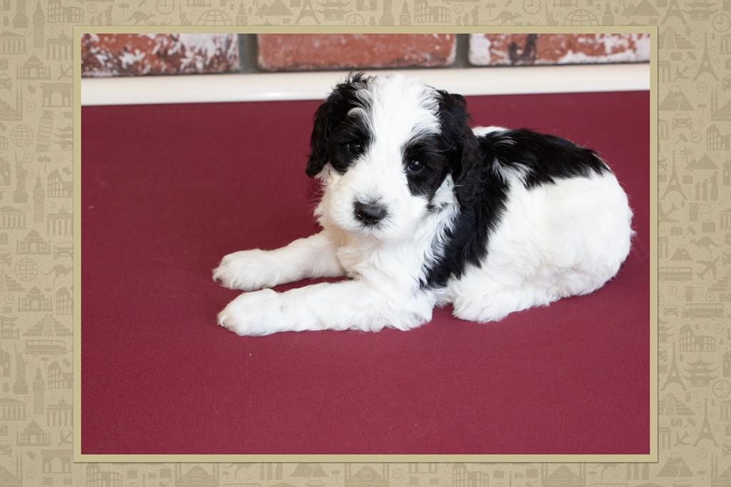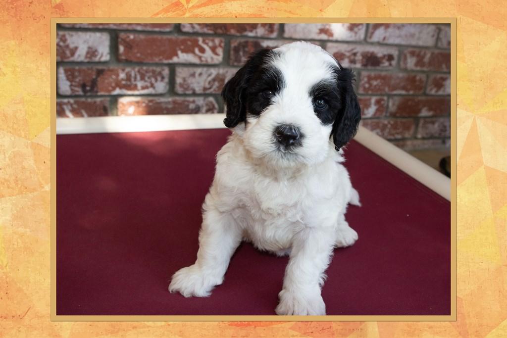 Our Australian Labradoodle puppies include caramel, red, and apricot. Bernedoodle puppies include black and white and tri-color. Colors will vary depending on the parent dogs.