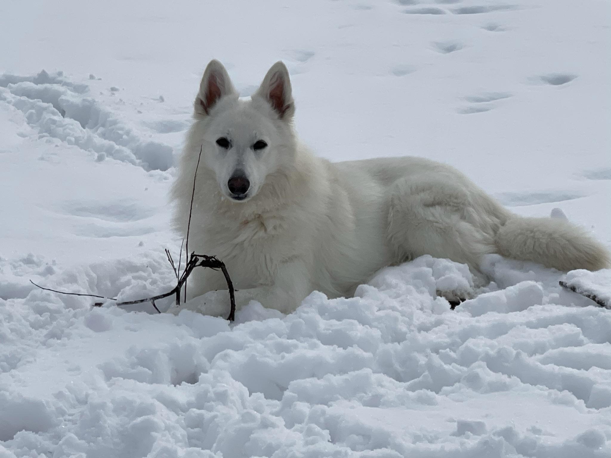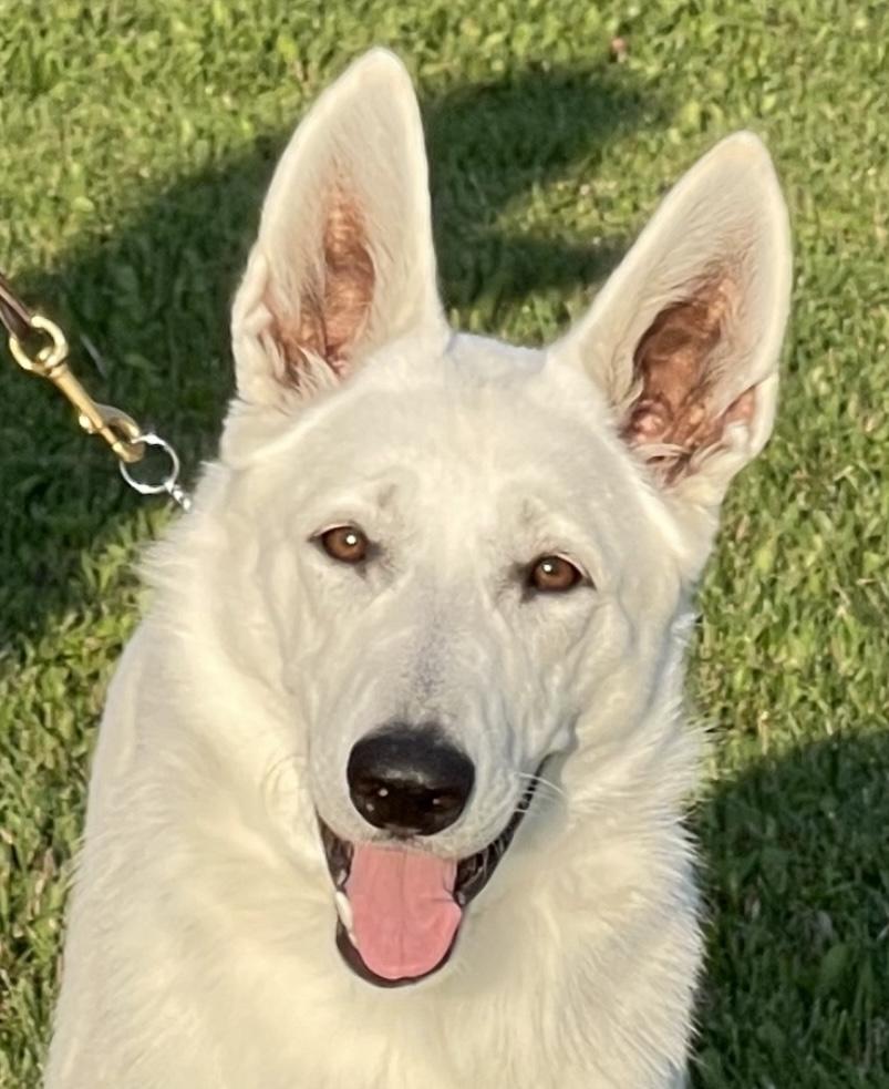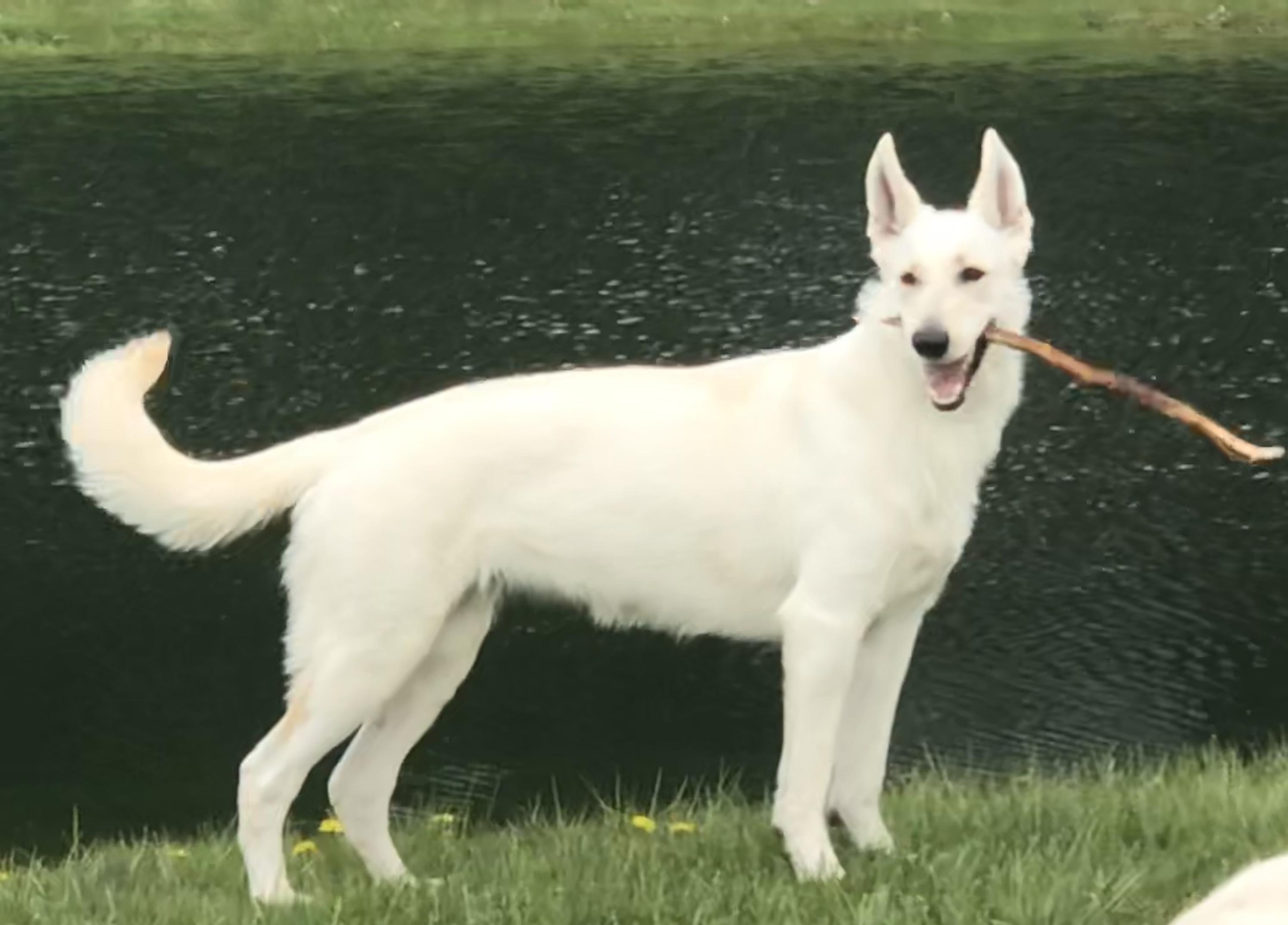 Ghost is a male White Shepherd. Carefully selected as a great representative of his breed, Missy decided to make him part of their program. Missy has passed Good Dog’s screening process, which involved a review of their breeding practices, environment, and the mental and physical health of their dogs.