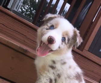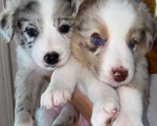 Our puppies include blue merle, red merle, and white and red. Colors will vary depending on the parent dogs.