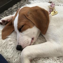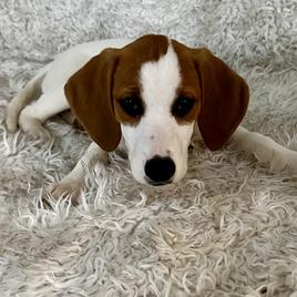 Hunter is a male American Foxhound. Carefully selected as a great representative of his breed, Gabriela decided to make him part of their program. Gabriela has passed Good Dog’s screening process, which involved a review of their breeding practices, environment, and the mental and physical health of their dogs.