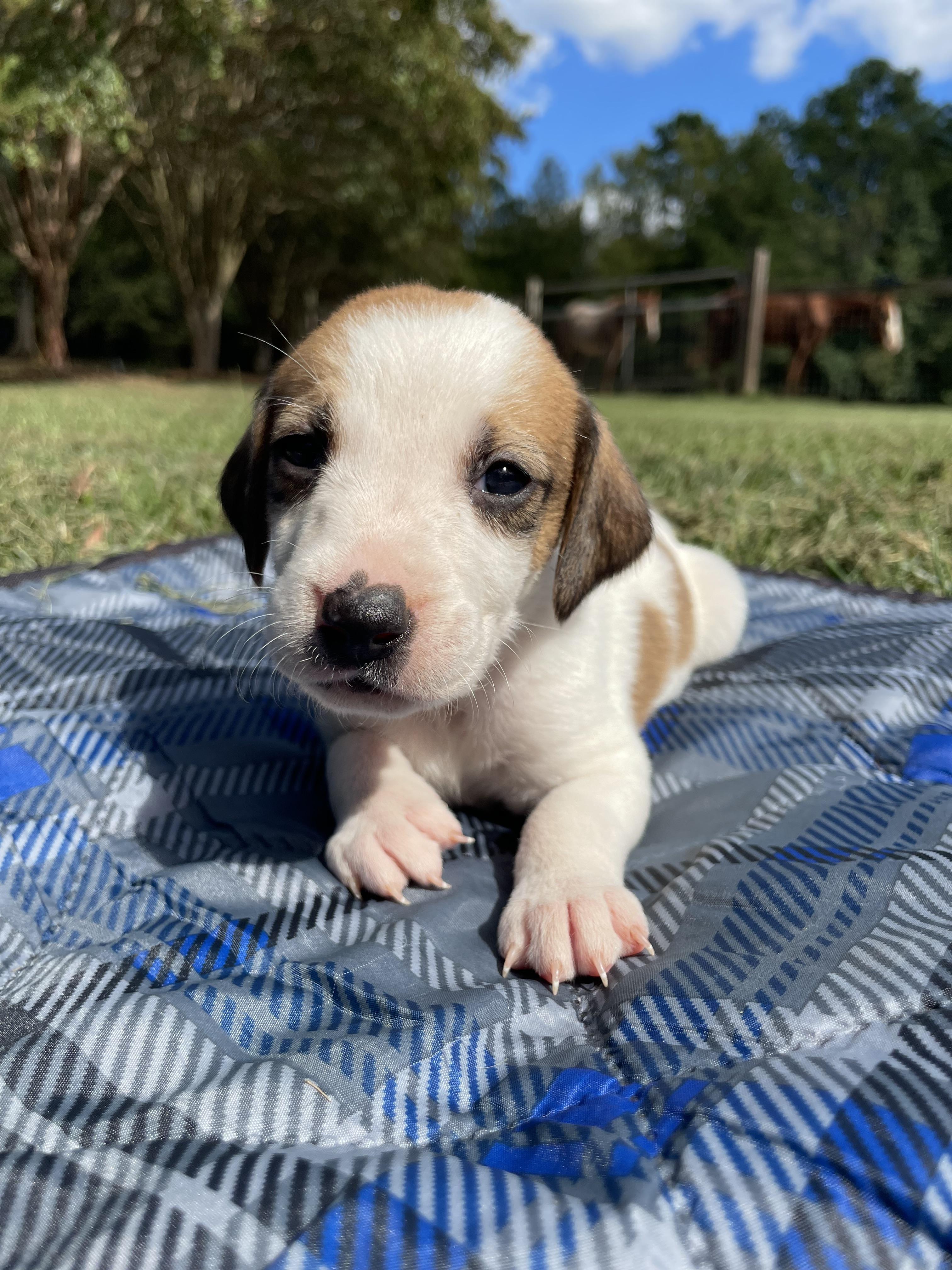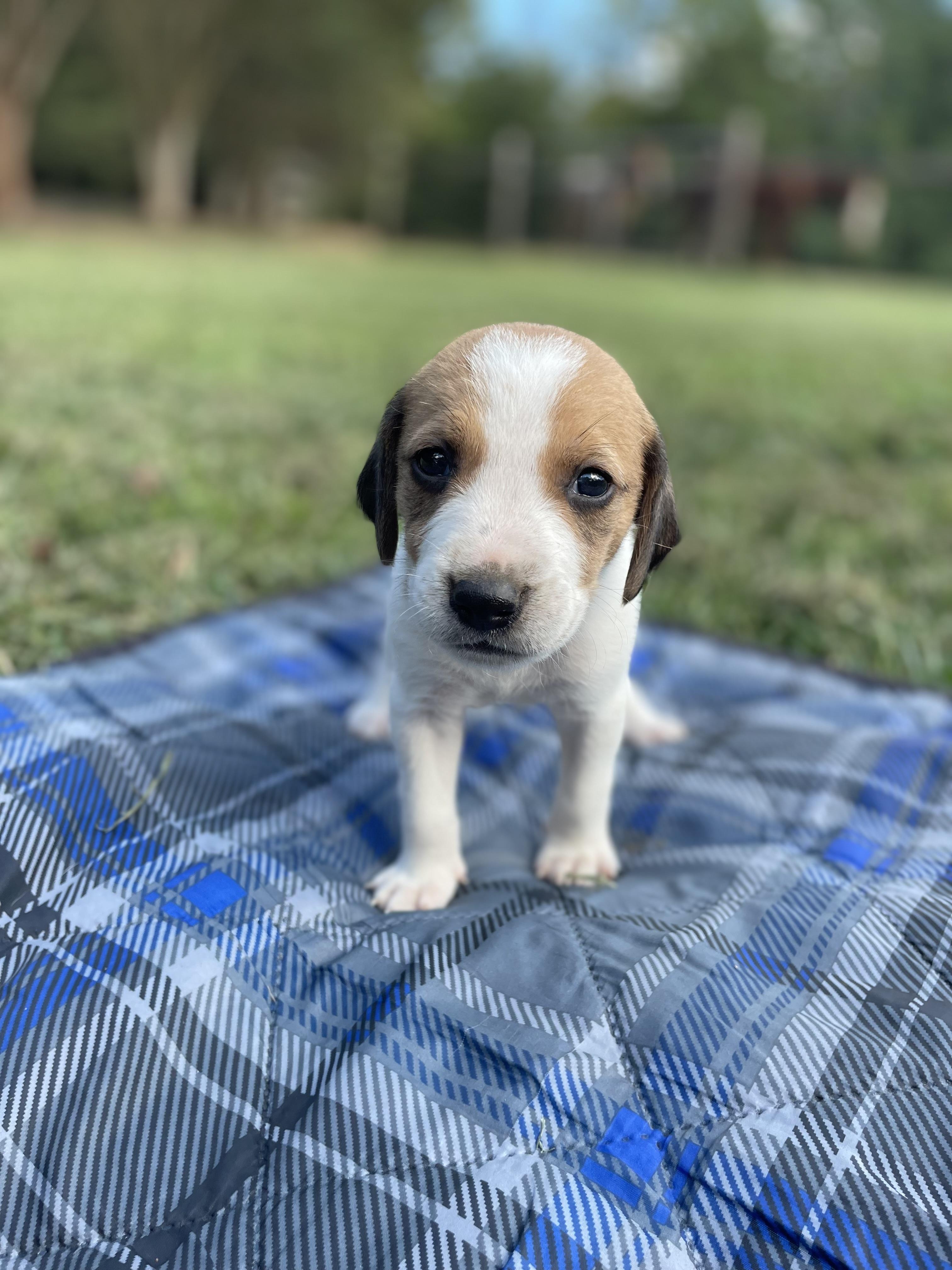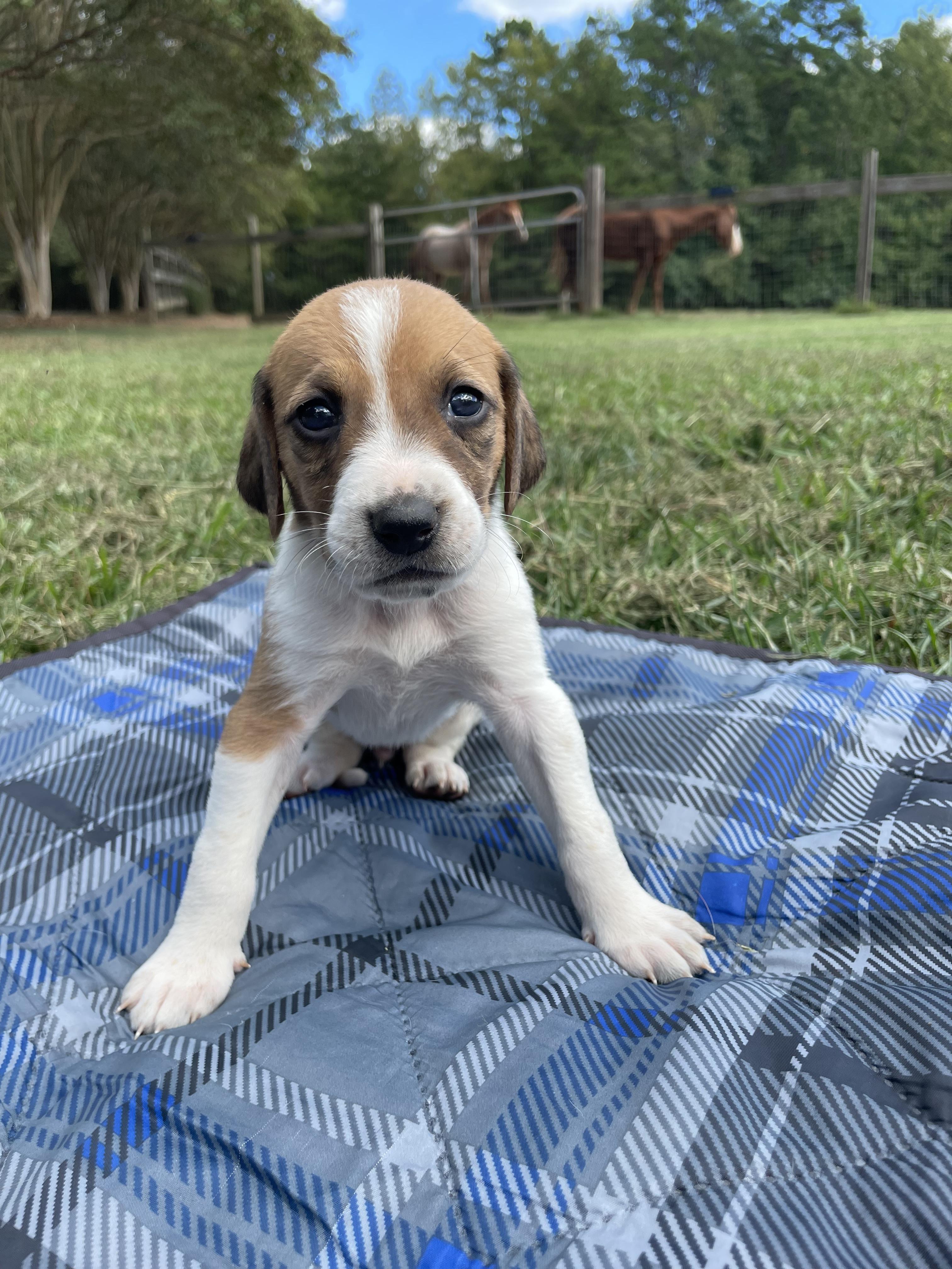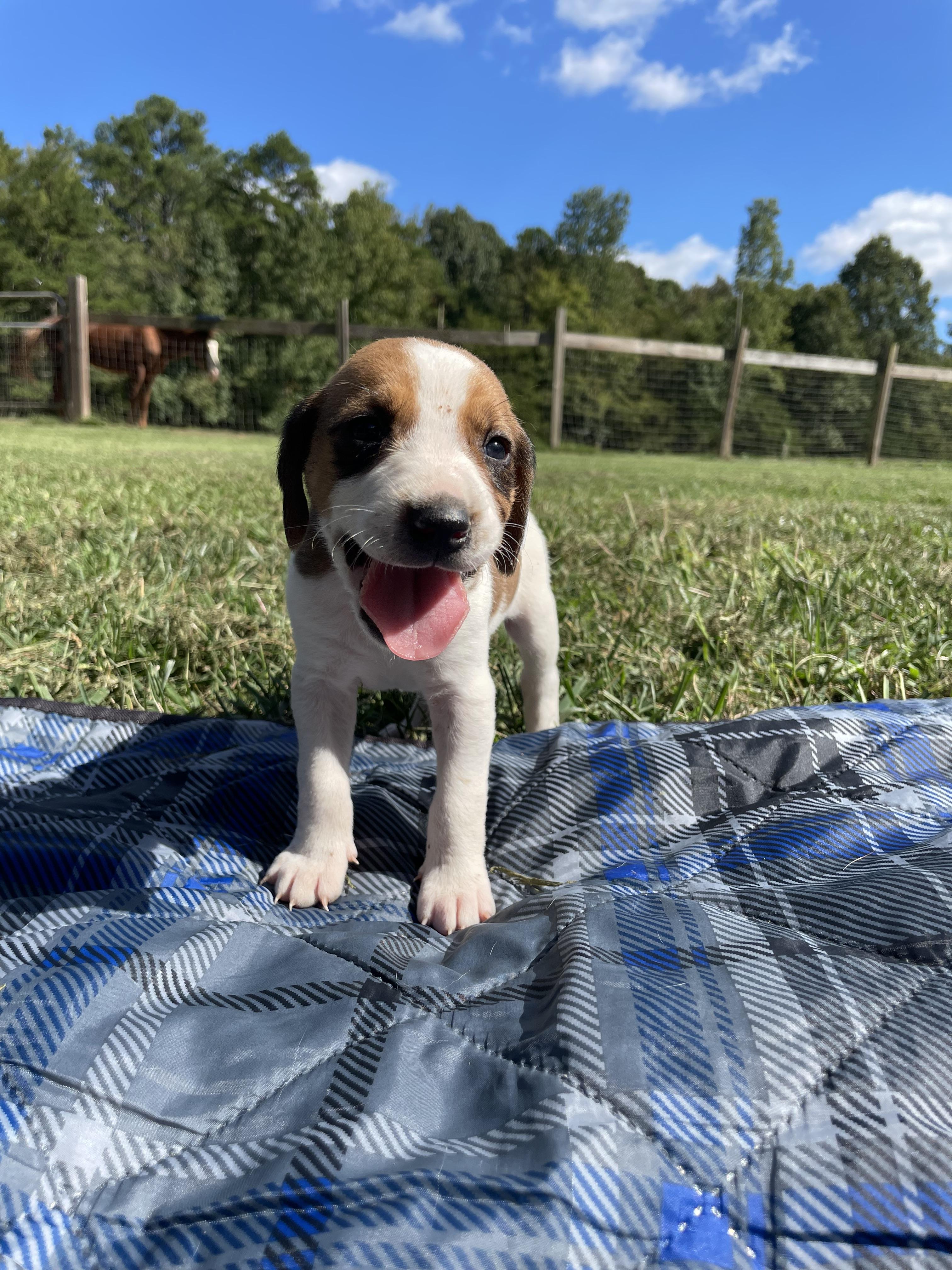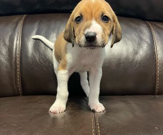 Working with Gabriel and Setting Sun Kennels was a great experience from start to end. They were very accommodating and helpful throughout the process. Love my new American Foxhound puppy. She is settling into her new pack very well. Just love her!