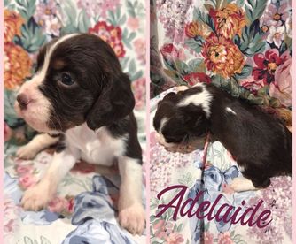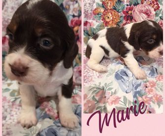 Our puppies include black and white, lemon and white, black white and tan, and liver white and tan. Colors will vary depending on the parent dogs.
