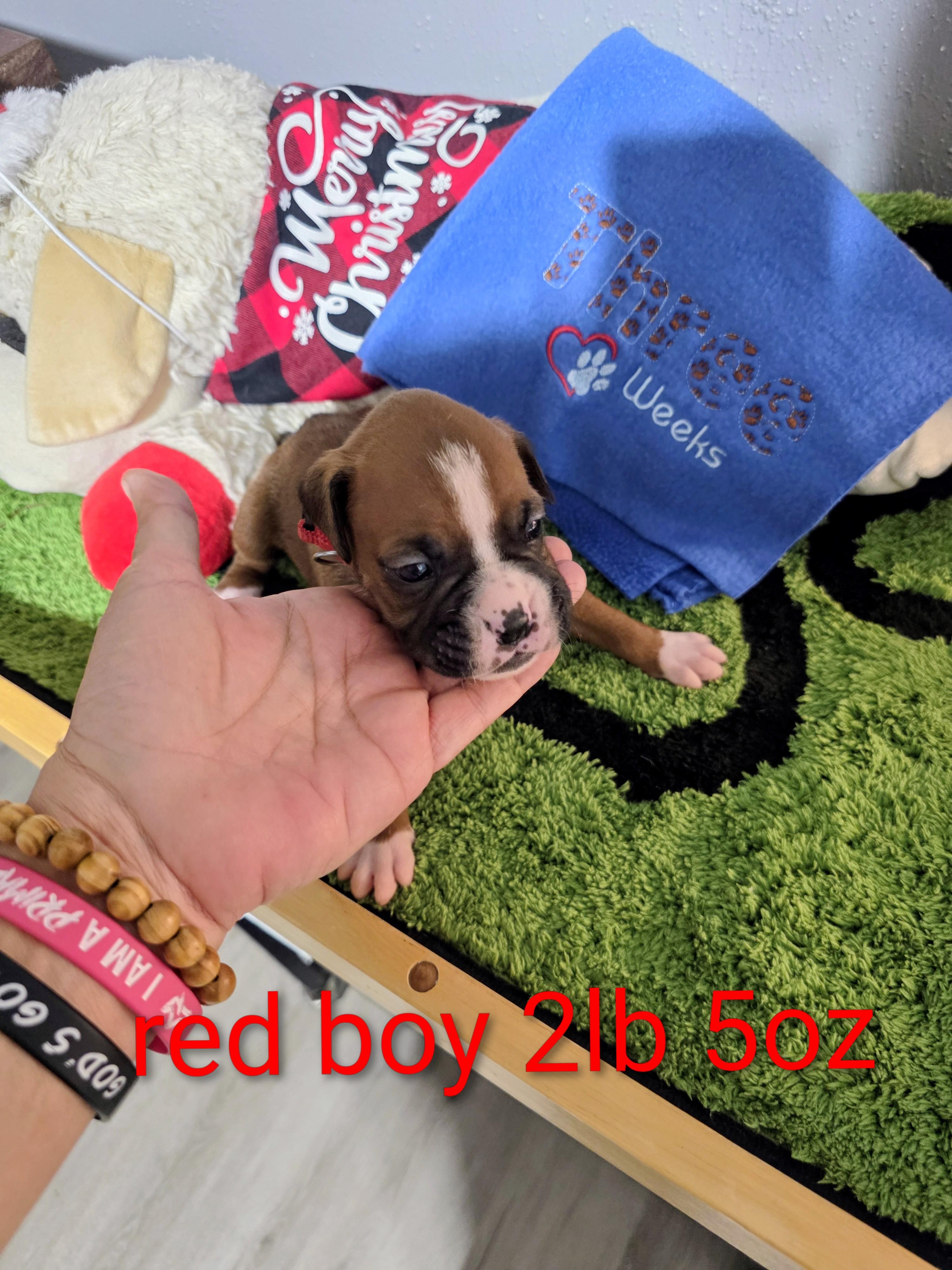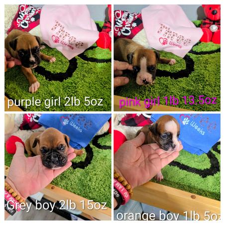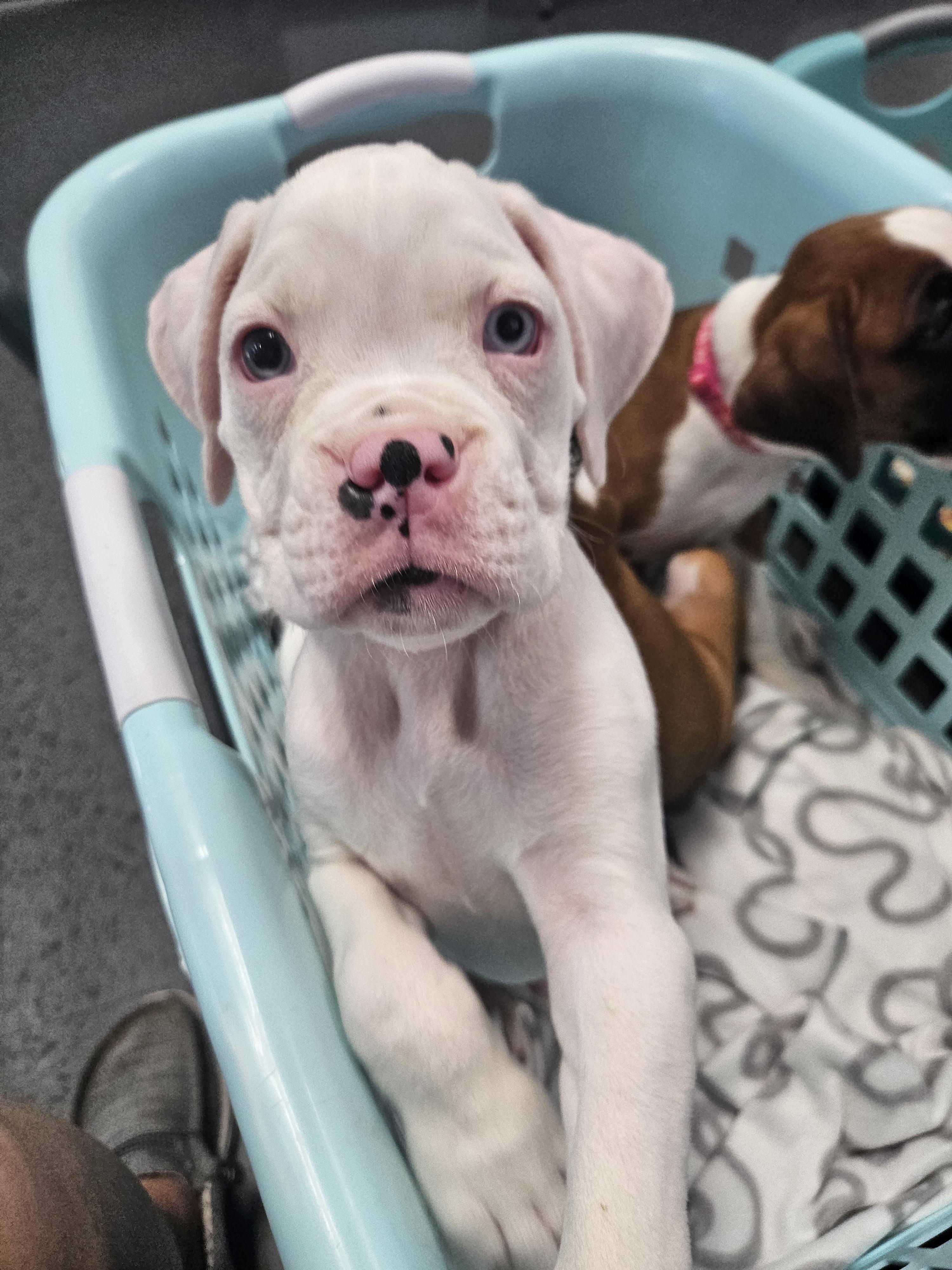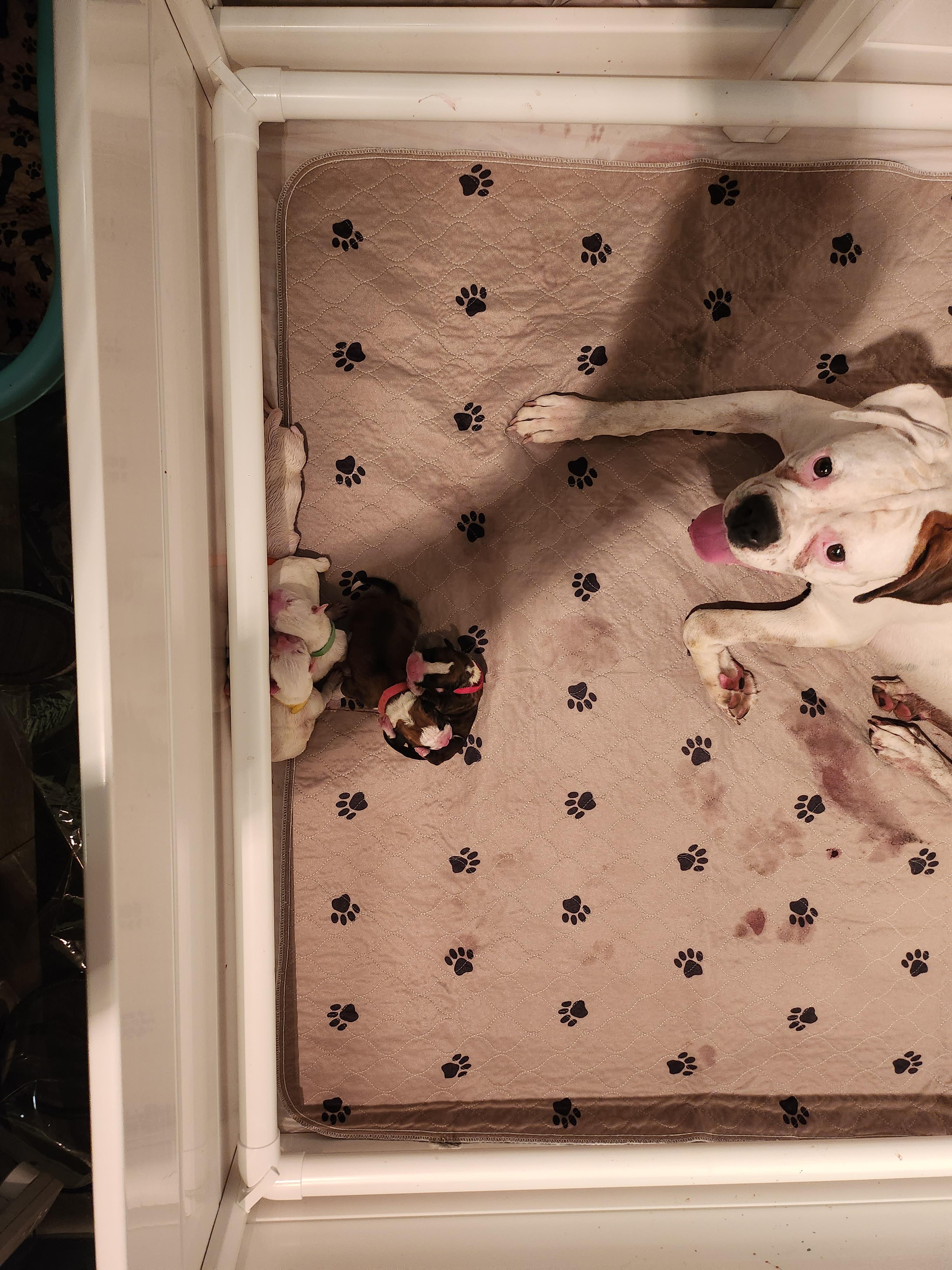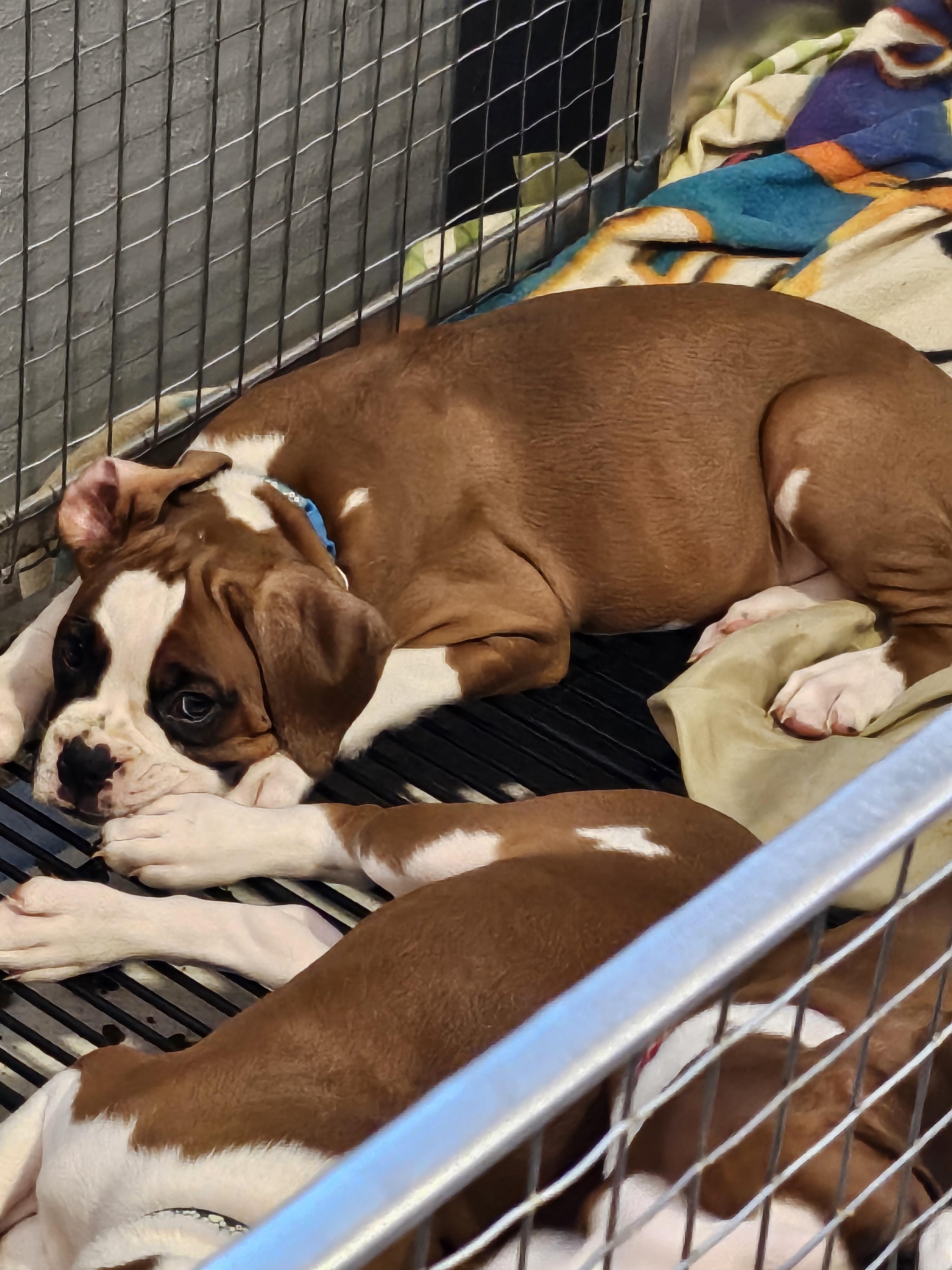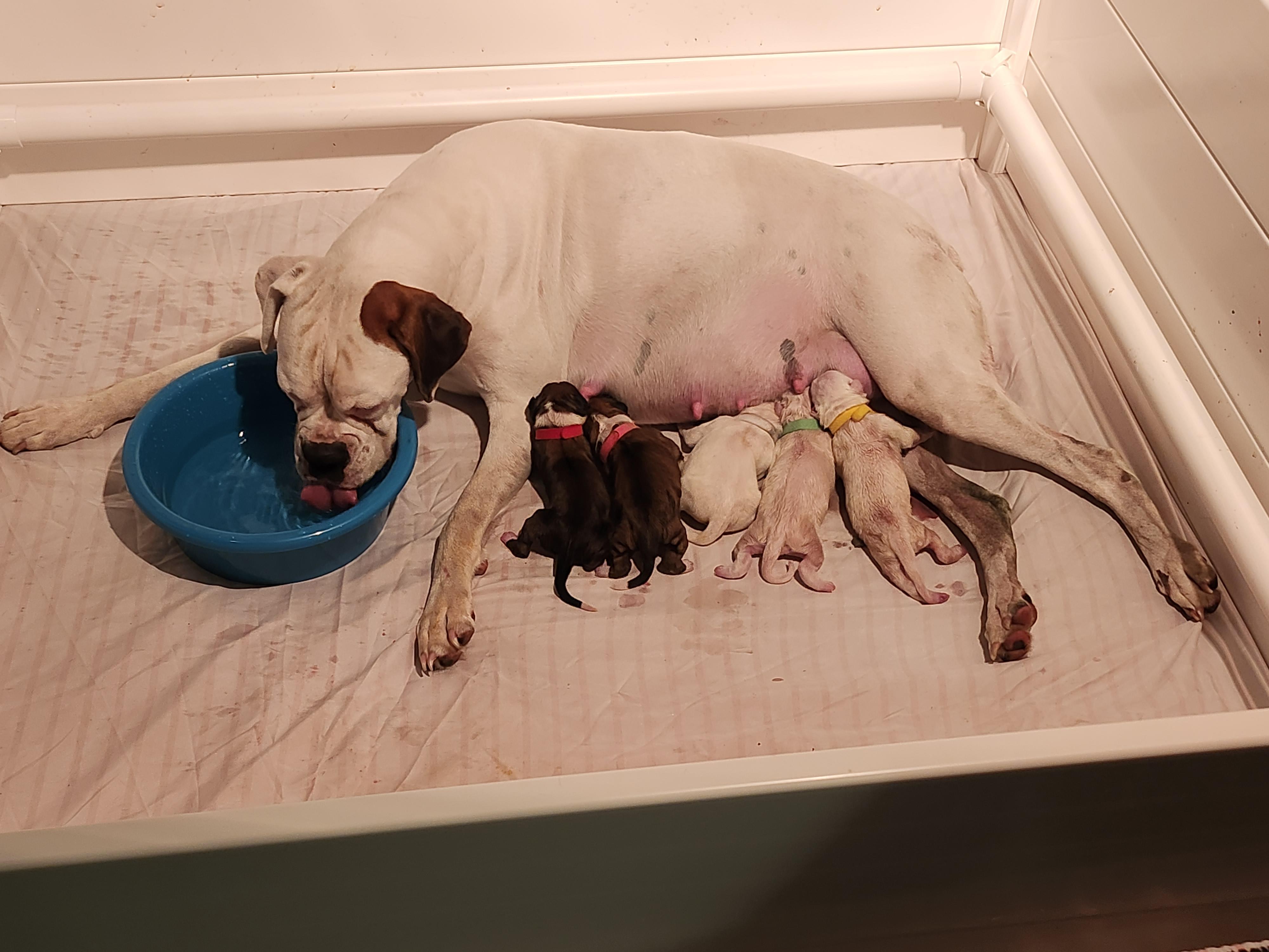 Darlene was amazing throughout the entire process. Answered all my questions and had so many great suggestions. She kept me updated w/photos and milestones the entire time. Sophie was so prepared when she came home. She slept through the night the first night and was already trained on the pads. Darlene made feeding so easy w/all of her information on eating schedules, what to feed her, etc….. I highly recommended Seufzer’s Boxers and look forward to keeping in touch for the long future.