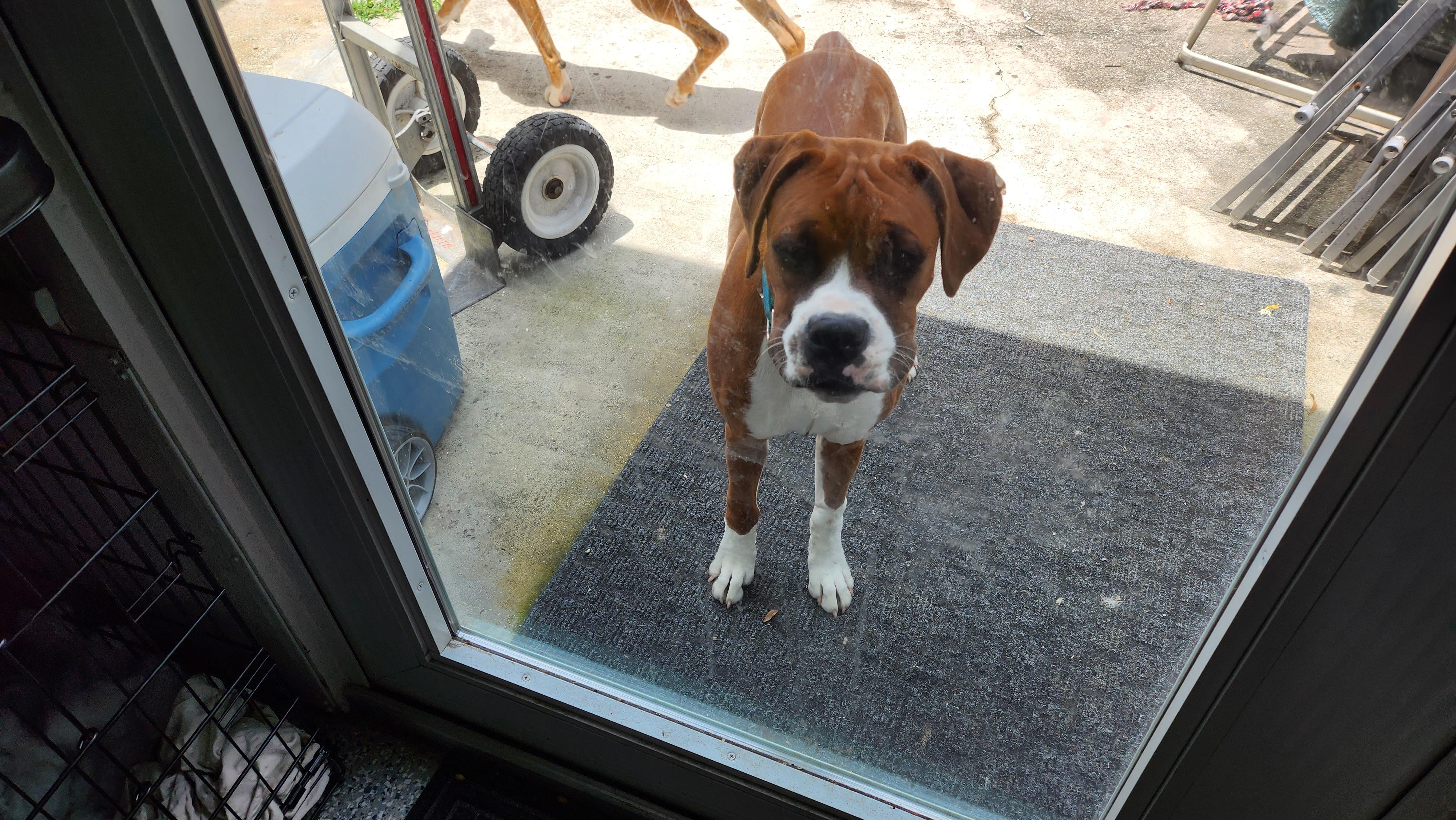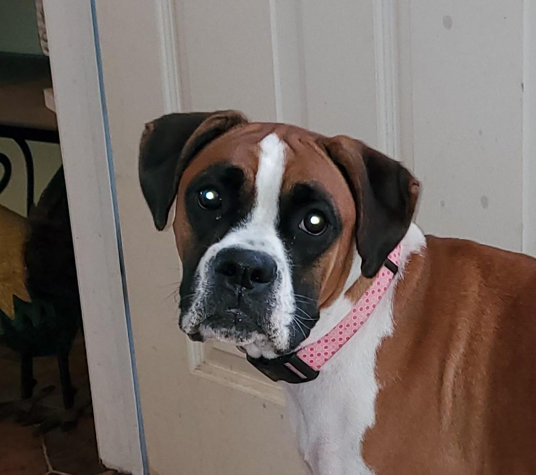 Lilly is a female Boxer. Carefully selected as a great representative of her breed, Darlene decided to make her part of their program. Darlene has passed Good Dog’s screening process, which involved a review of their breeding practices, environment, and the mental and physical health of their dogs.