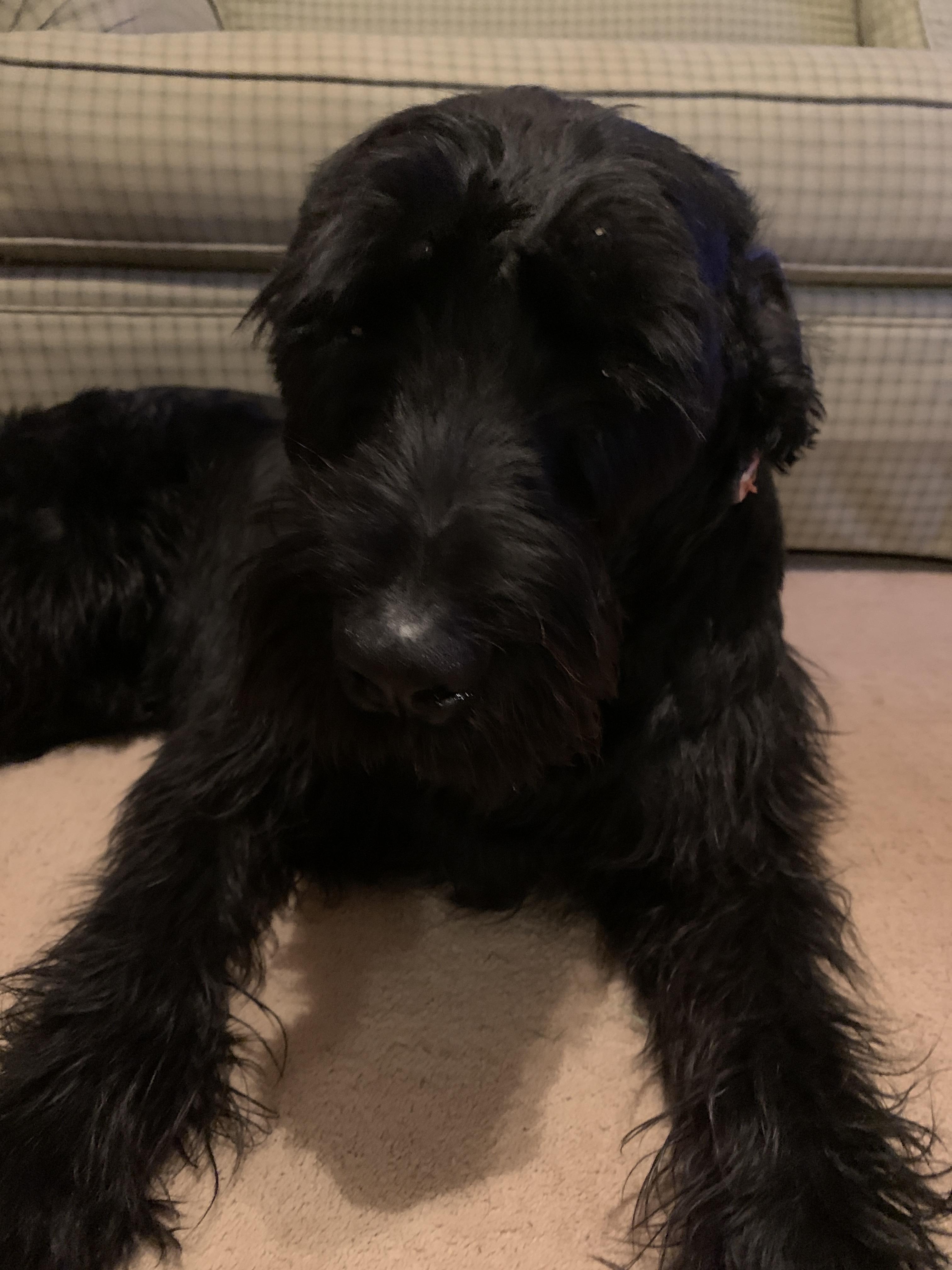 Darla is a female Giant Schnauzer. Carefully selected as a great representative of her breed, Sharon decided to make her part of their program. Sharon has passed Good Dog’s screening process, which involved a review of their breeding practices, environment, and the mental and physical health of their dogs.
