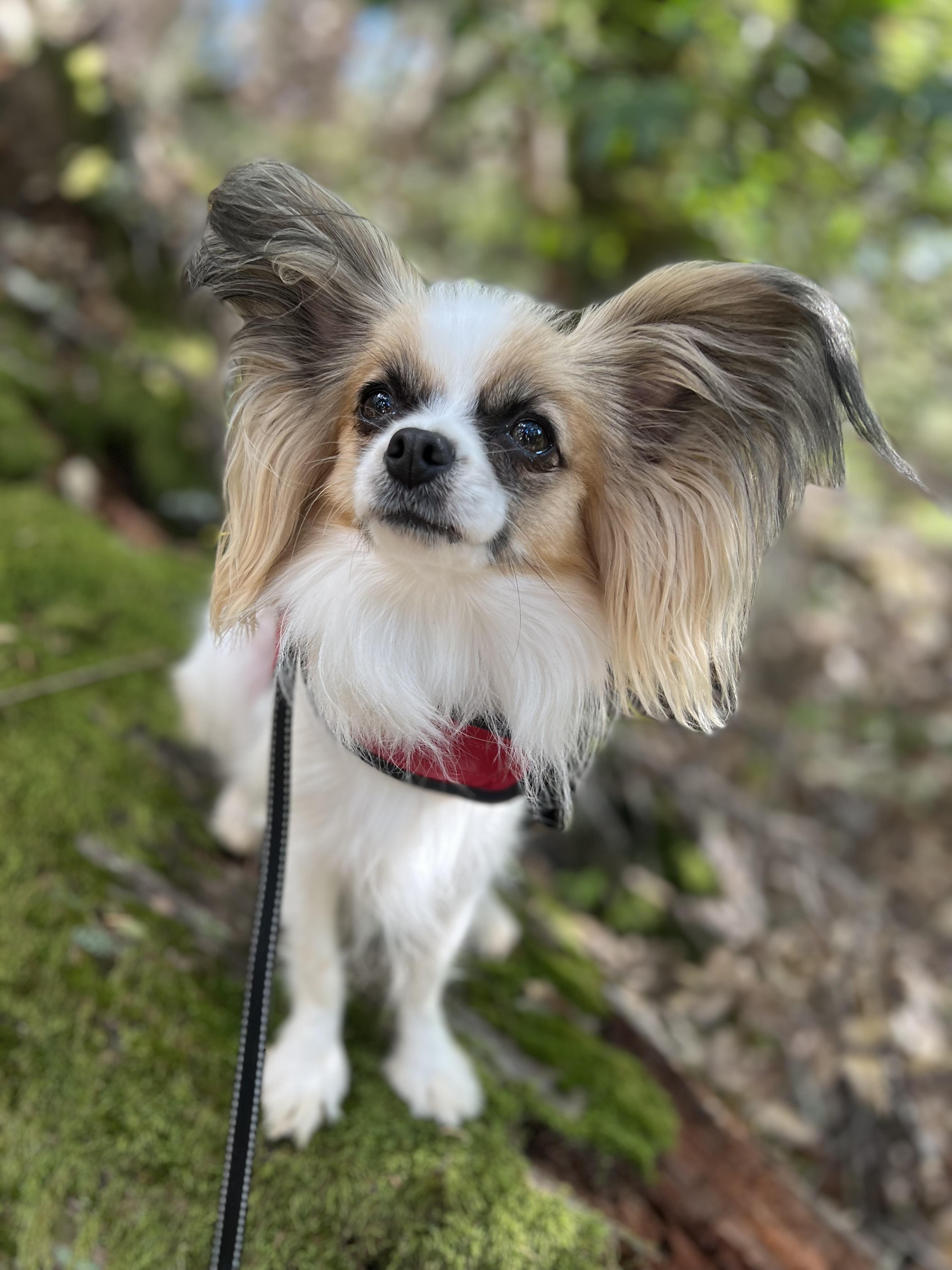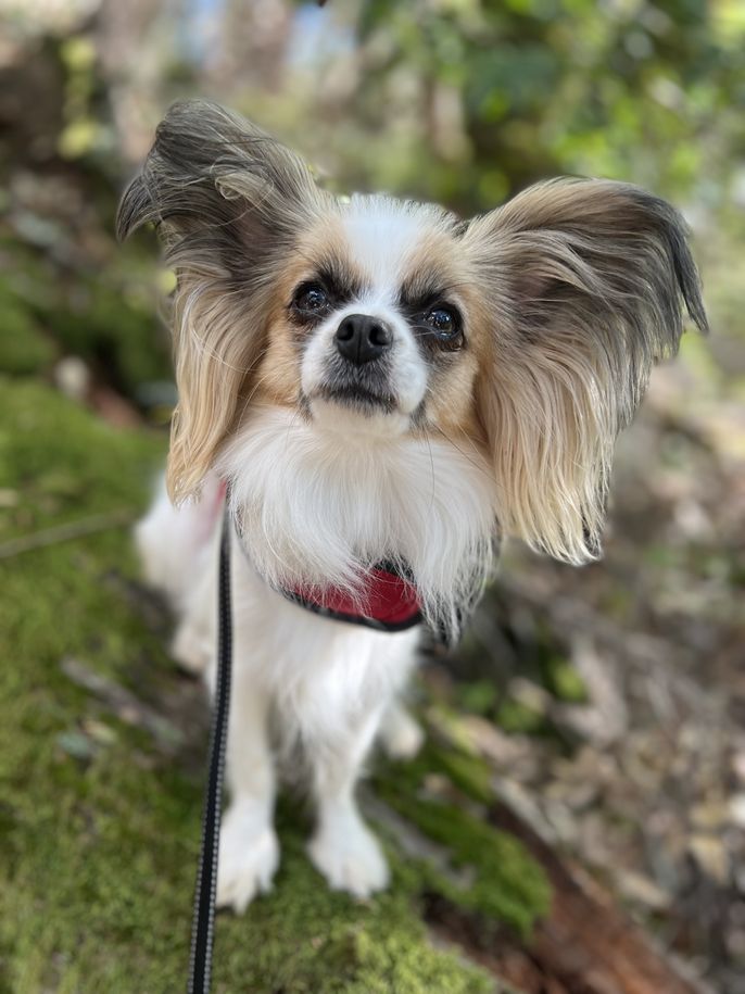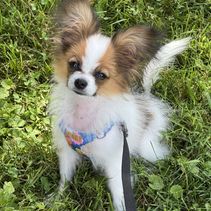 As a young girl I saw my first papillon. I remember the little dog took my breath away! It took me almost 4 decades to get my own. With a history of volunteering, fostering, and rescuing dogs, cats, and bunnies, we began breeding with deep research and knowledge in 2019. Our dogs both come from champion lines and compliment each others' conformations and personalities.