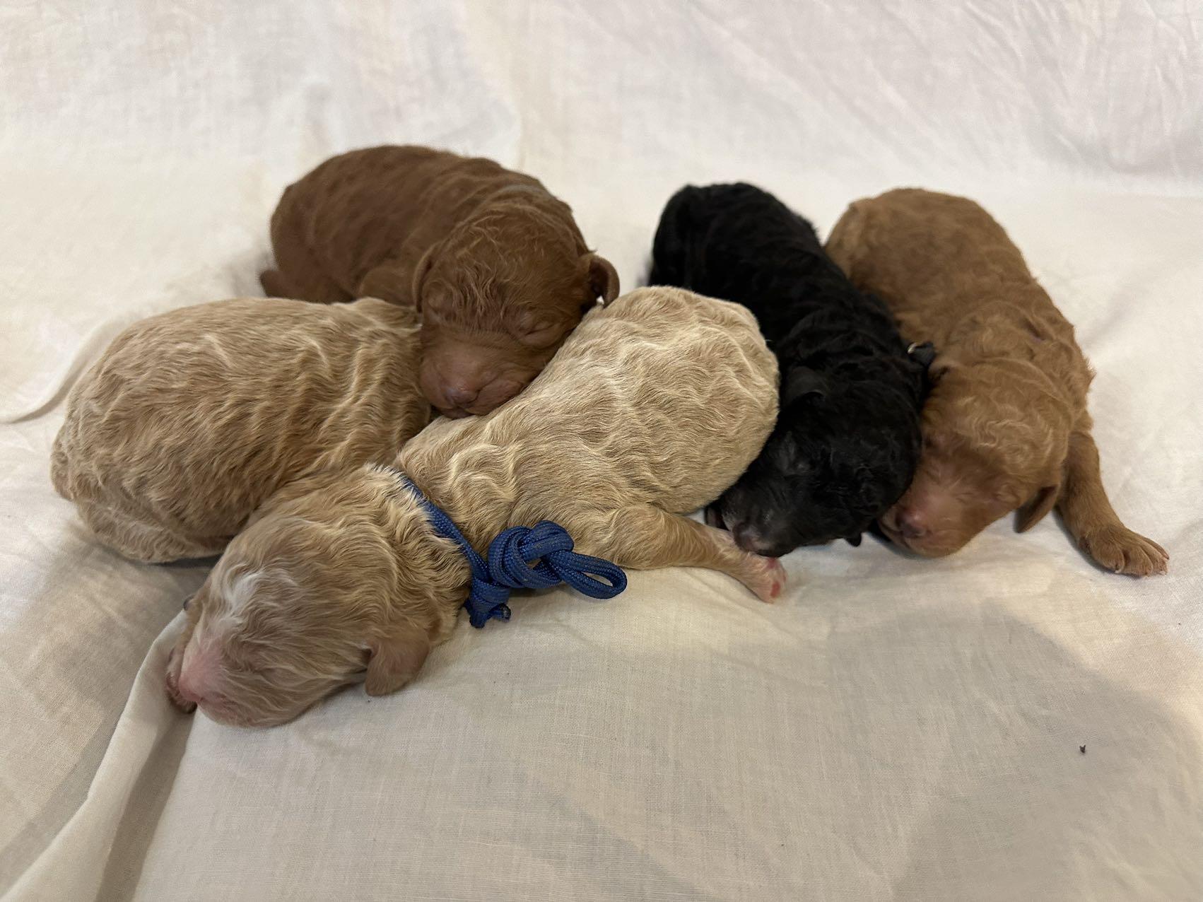 Our puppies include apricot, black, and red. Colors will vary depending on the parent dogs.