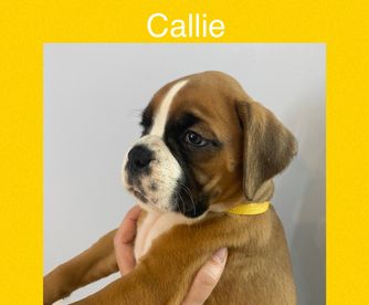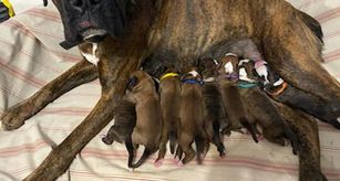 Priscilla was born and raised here. This is her third and final litter. She is 1`00% American Boxer. She ARCA negative and DM negative. Priscilla is a great mother and a very loving and confident dog. AKC registration.