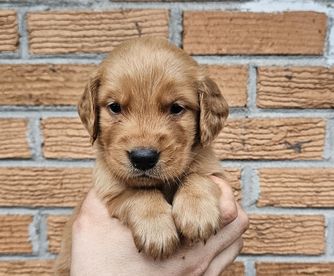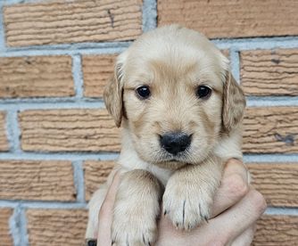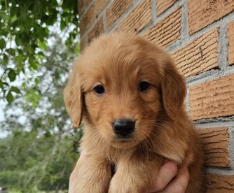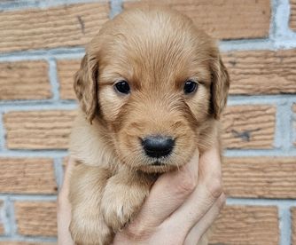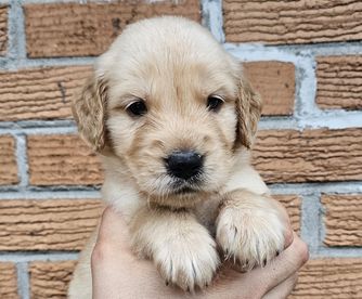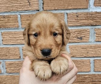 Our Golden Retriever puppies are golden. Bernese Mountain Dog puppies are tri-color. Colors will vary depending on the parent dogs.