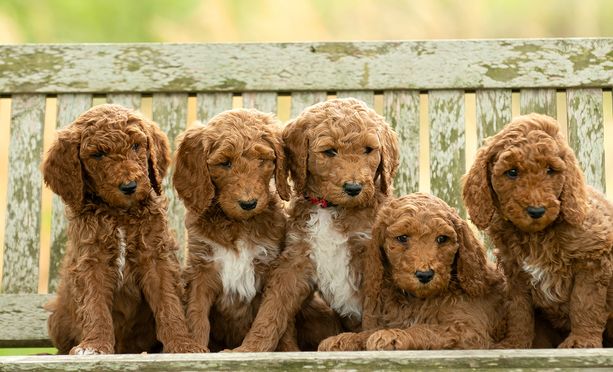 Goldendoodle puppies include cream, apricot, and red. Colors will vary depending on the parent dogs.