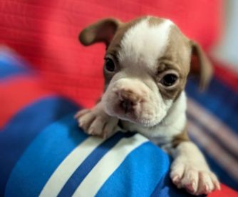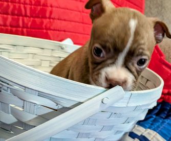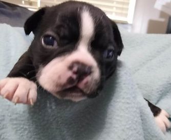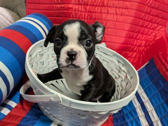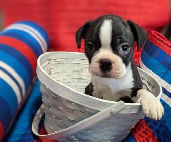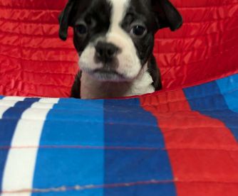 “We have Traditional Tuxedo Black & white Boston Terrier & Red & white Boston Terrier. They will have 1st vet visit with vaccination shot and worming. The liter is registered with CKC, So new owner can simply send paper in, for free, with their name as new owners. A $100 non refundable deposit is required for a puppy to be held for you. they will be ready to go to their new homes when they are 8 weeks old.”