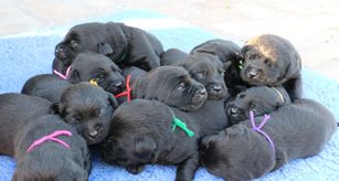 Our puppies include black, chocolate, and yellow. Colors will vary depending on the parent dogs.