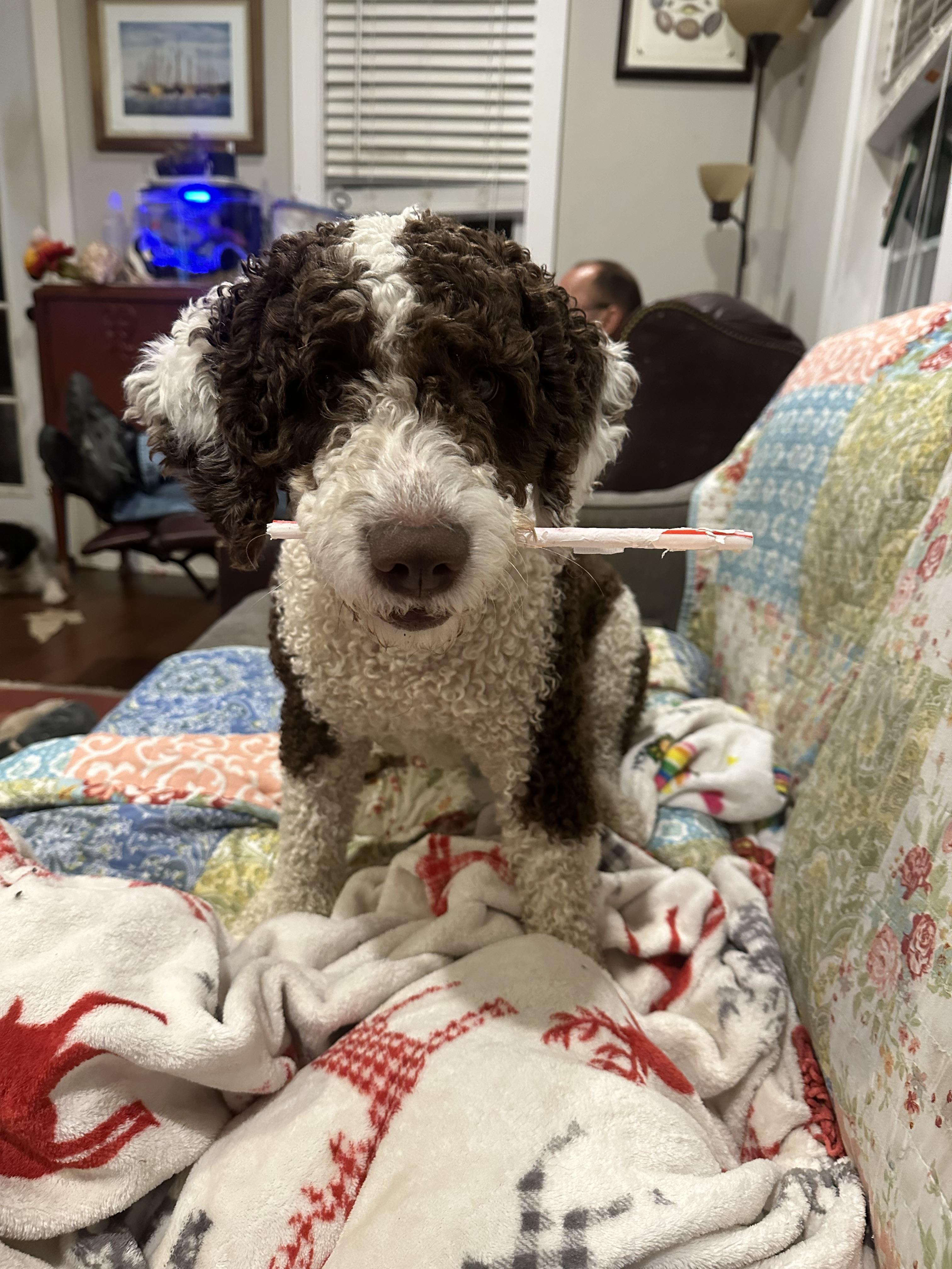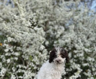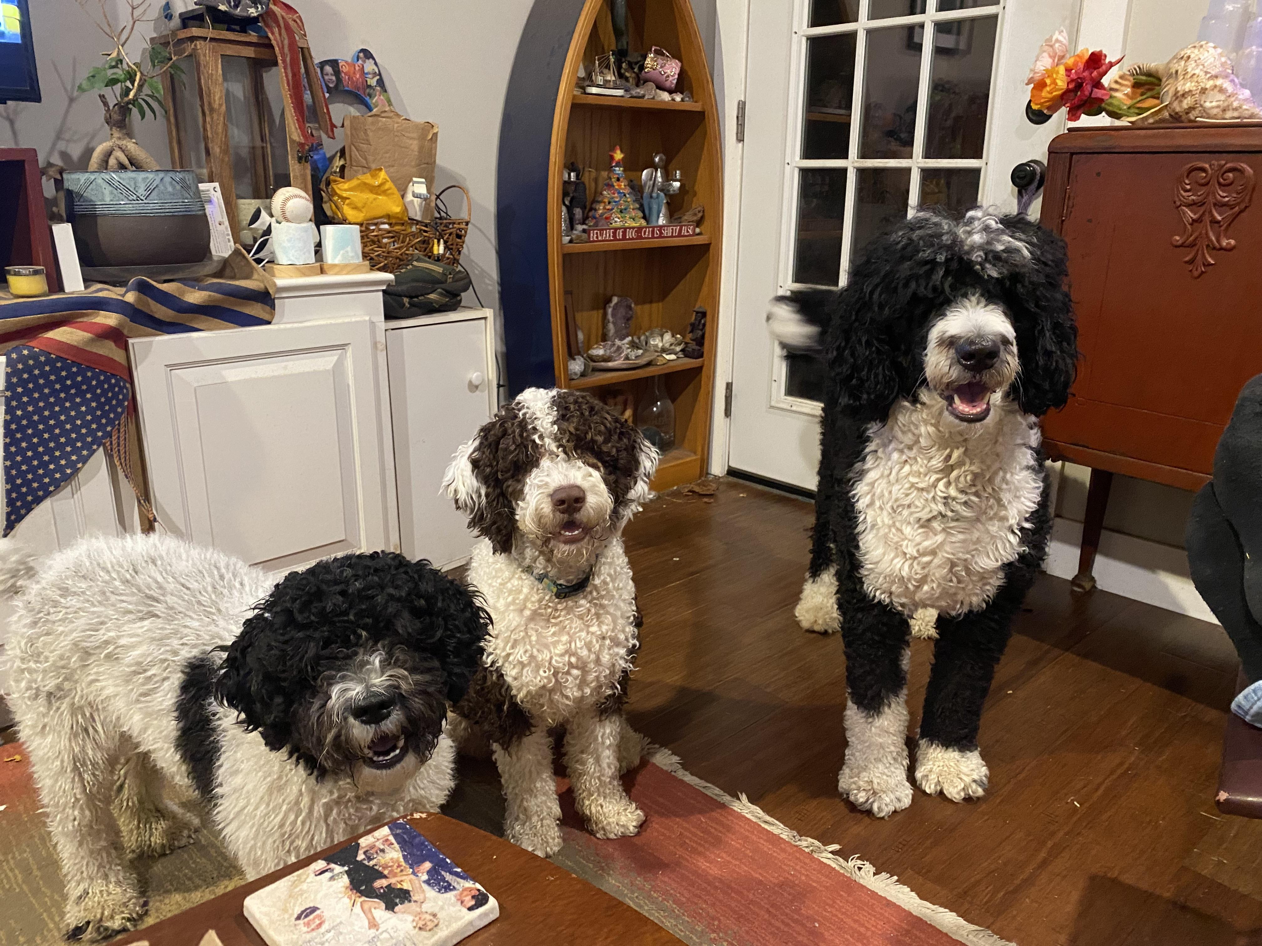 My Bernedoodle was a blessing in my life as my service dog and I began to explore what the perfect breed would be for alert dogs. A companion animal who is smart, trainable, focused on their owner, nose talented and a little stubborn. The Spanish Water was that dog. I found a breeder that would share her knowledge with me and all those secrets to train a SWD for a good family dog.