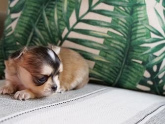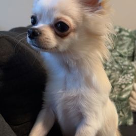 Frauline is a female Chihuahua. Carefully selected as a great representative of her breed, Emily decided to make her part of their program. Emily has passed Good Dog’s screening process, which involved a review of their breeding practices, environment, and the mental and physical health of their dogs.