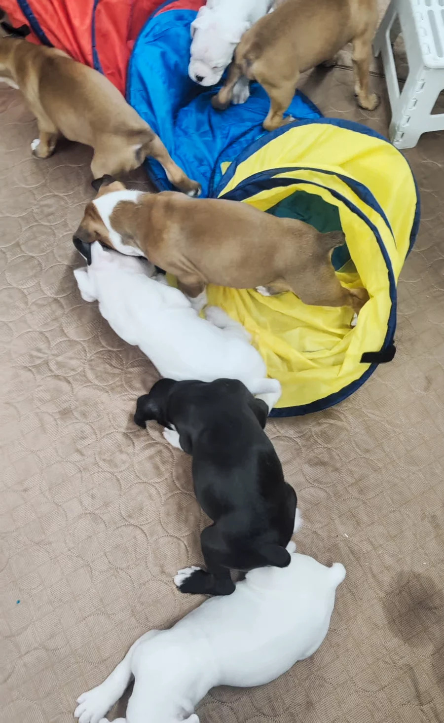 It's playtime 🥰go home days start Sunday Stella's family is first and then Monday it's Skylar and Susie.And then almost every day next week another puppy goes home❤️Everyone has mastered the clicker training and the litterbox training,we will miss them but I know they're knew families will love them and I know I'll get loads of pictures and videos so I can watch them grow ❤️