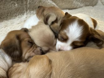Our puppies include cream and red. Colors will vary depending on the parent dogs.