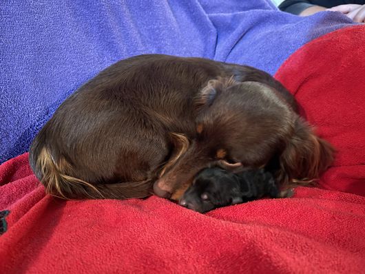 Juliet is a female Dachshund. Carefully selected as a great representative of her breed, Mark decided to make her part of their program. Mark has passed Good Dog’s screening process, which involved a review of their breeding practices, environment, and the mental and physical health of their dogs.