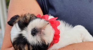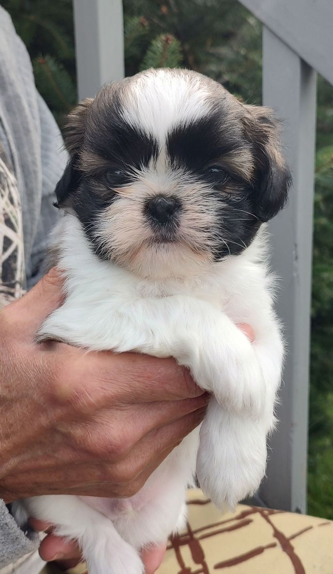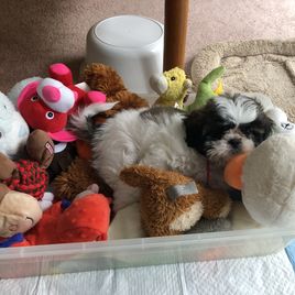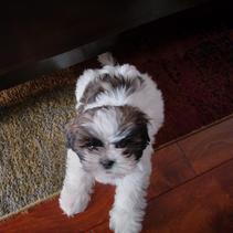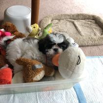 Teddy is a wonderful puppy. He was raised on a beautiful farm with really great and loving people. We met mom and dad Shih Tzu and they were also well cared for. We love this little guy. He was raised very well and is such a love bug. Growing fast and very healthy.
