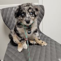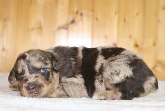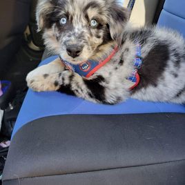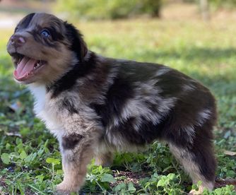 Our puppies include black, red merle, blue merle, and red. Colors will vary depending on the parent dogs.