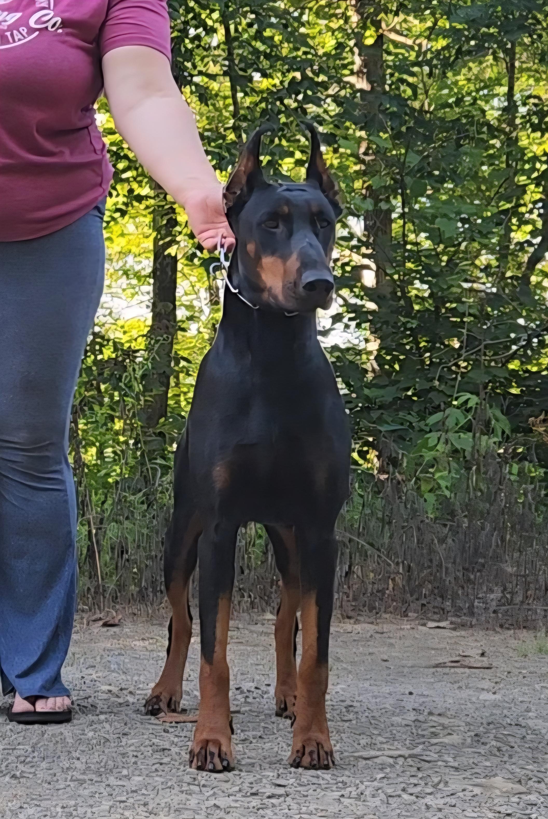Romilda is a lovely show line Doberman with a fabulous, social temperament. She is good with kids, small animals, and other dogs.