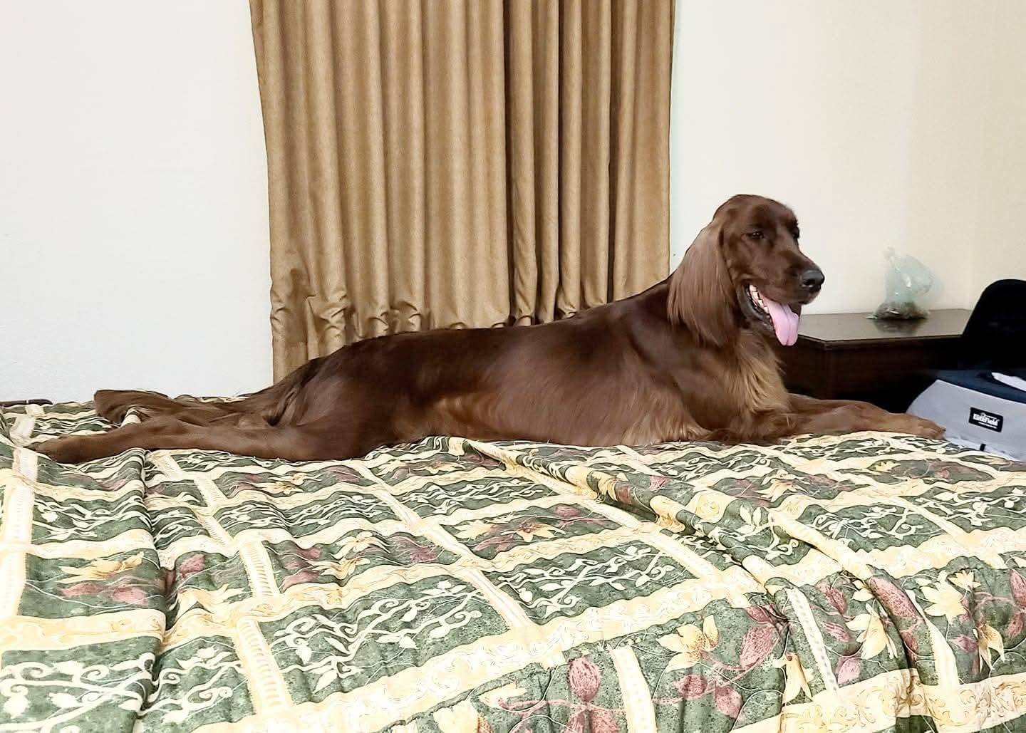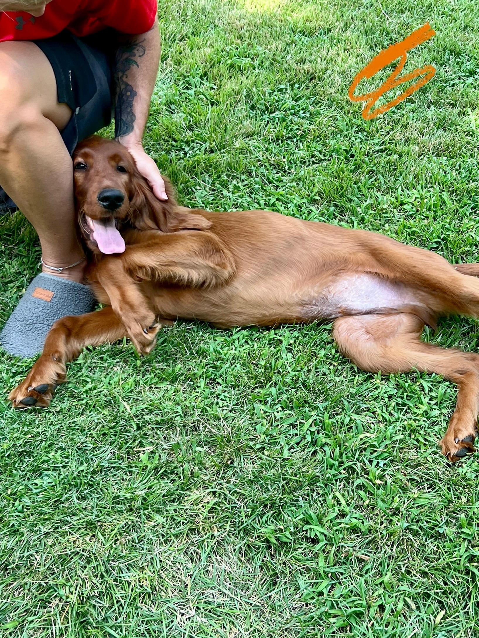Prada is a female Irish Setter. Carefully selected as a great representative of her breed, Samantha decided to make her part of their program. Samantha has passed Good Dog’s screening process, which involved a review of their breeding practices, environment, and the mental and physical health of their dogs.
