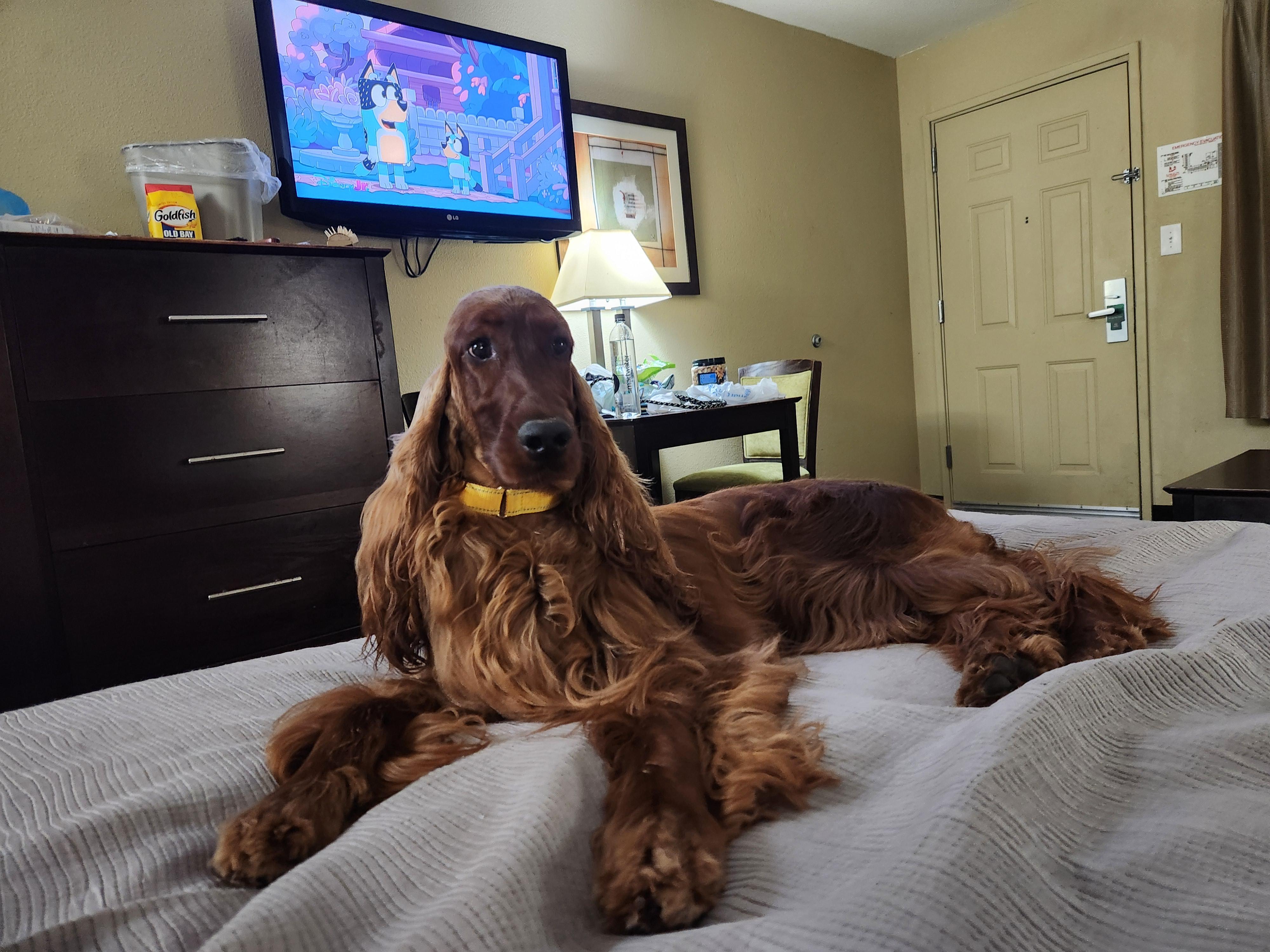Anastasia is a fabulous, affectionate girl with a striking, rich coat. Anastasia is AKC major pointed and scheduled to return to the show ring in 2026 to finish her championship. Anastasia has quite a few close relatives that are therapy dogs, service dogs, and a couple animal actors; she is from a long line of well tempered, easily trained Setters.