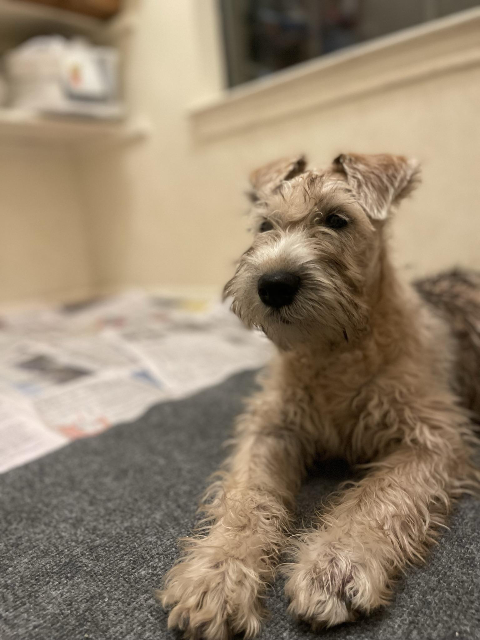 Tula is a female Soft Coated Wheaten Terrier. Carefully selected as a great representative of her breed, Teri decided to make her part of their program. Teri has passed Good Dog’s screening process, which involved a review of their breeding practices, environment, and the mental and physical health of their dogs.
