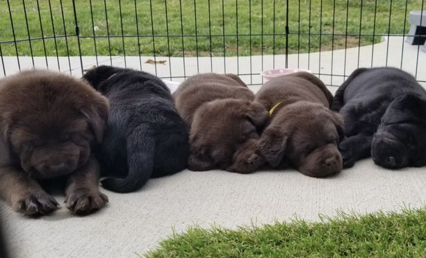 Our puppies include black, chocolate, and yellow. Colors will vary depending on the parent dogs.
