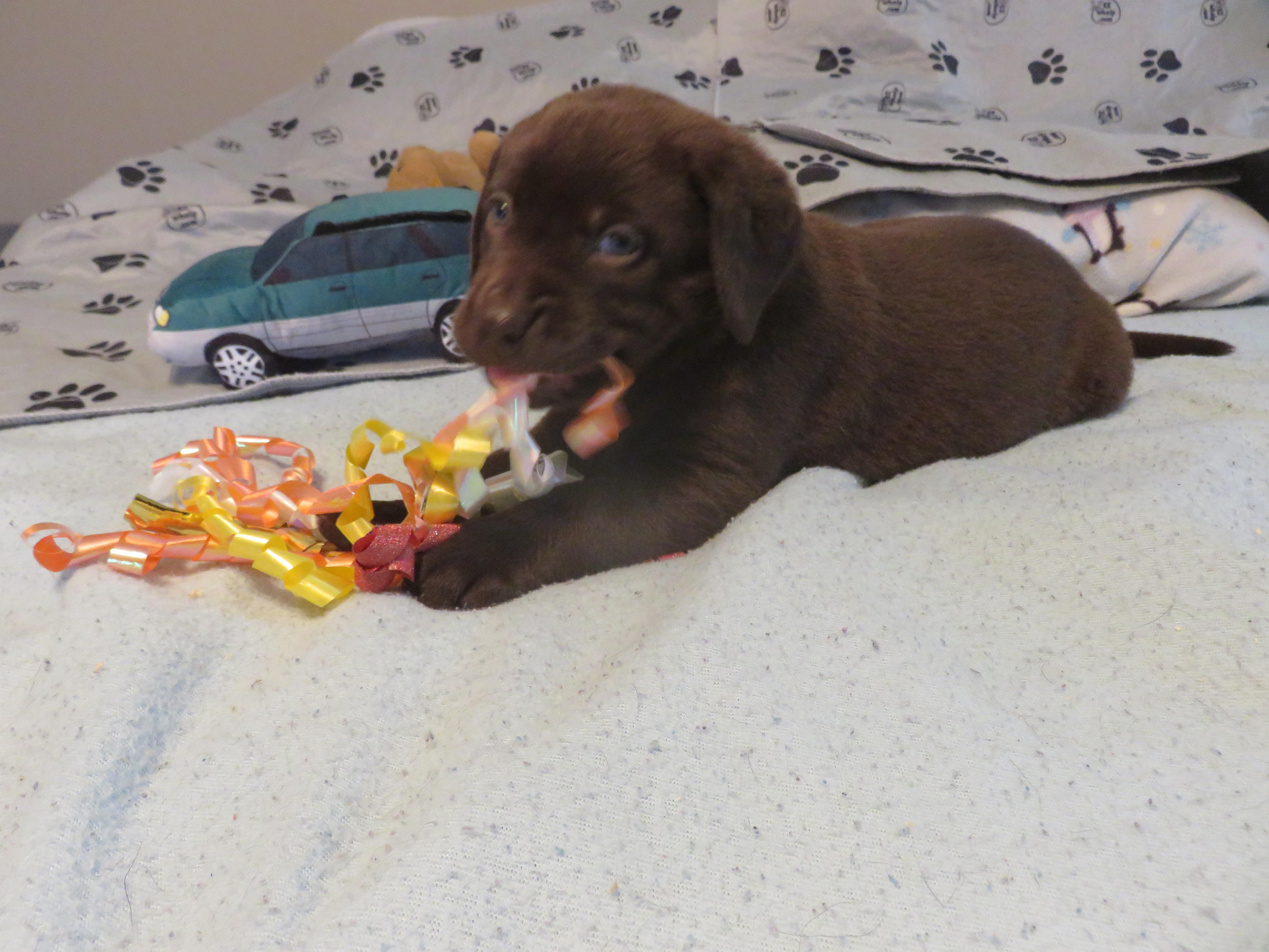 Our puppies include black, chocolate, and yellow. Colors will vary depending on the parent dogs.