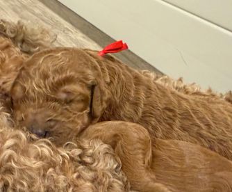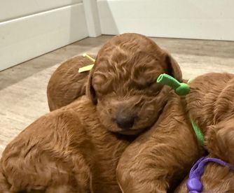 Our puppies are red. Colors will vary depending on the parent dogs.