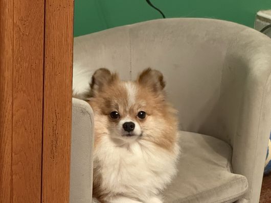 Addi is a people pleaser. She’s a big love bug but can sense if anyone is upset. She is a happy dog who loves to play with the other Poms.