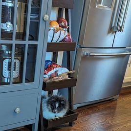 Lenny is a goof ball! He enjoys standing in the food dish so he doesn’t have to share with anyone else. He’s 5.5lbs and he’s great with everyone including children. He’s quiet most of the time but loves to play with toys.