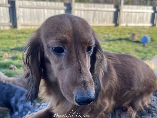 CC is a female Dachshund 7 months old. Carefully selected as a great representative of her breed, Shannon decided to make her part of their program. Shannon has passed Good Dog’s screening process, which involved a review of their breeding practices, environment, and the mental and physical health of their dogs.