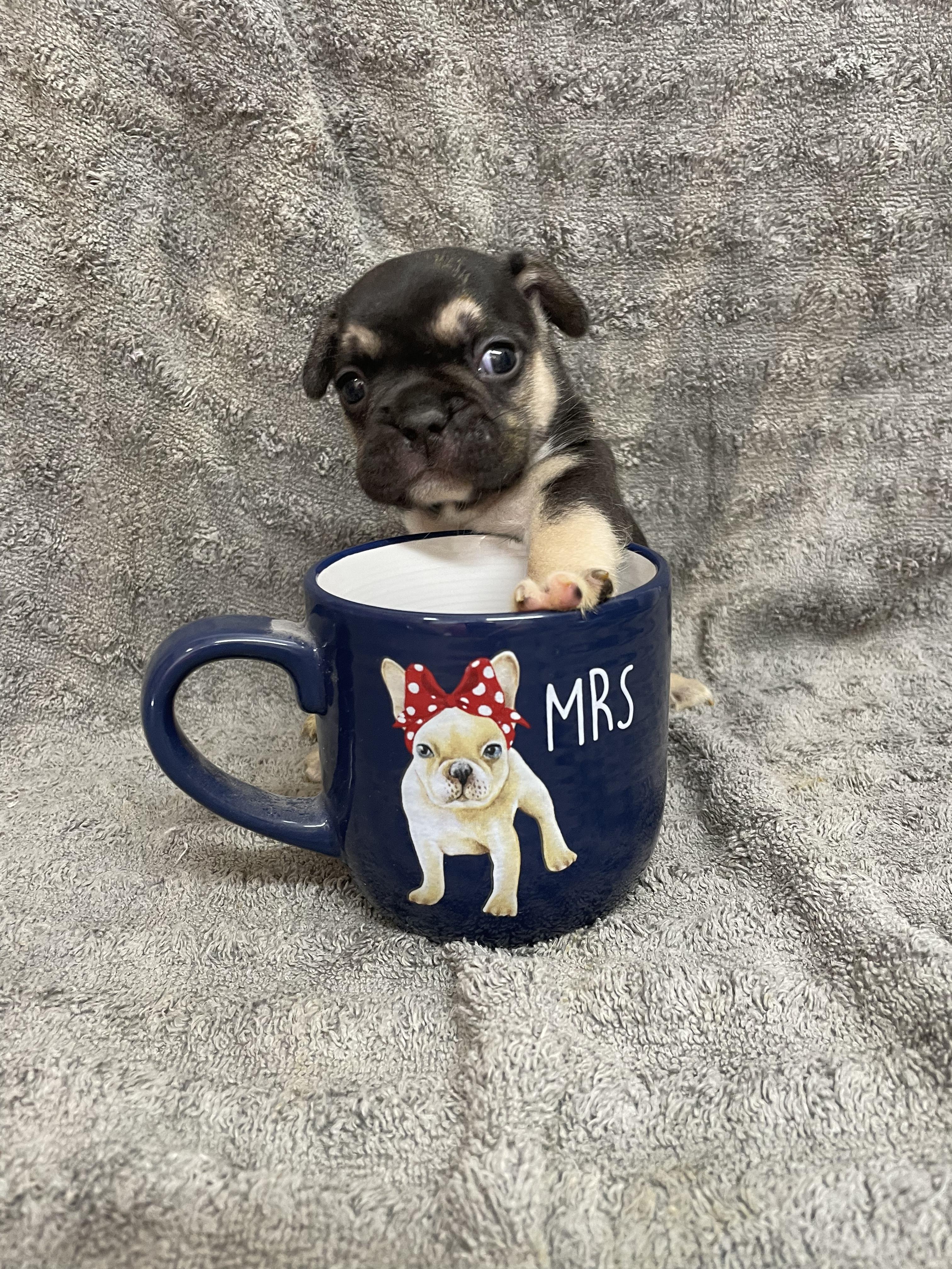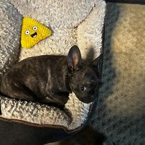 Tessla is a black French bulldog that loves to make a couch her spot. She is loyal and so loving. Her mom was a cream and her dad is a black tri.