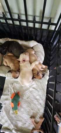 Our puppies include brindle, cream, and fawn. Colors will vary depending on the parent dogs.