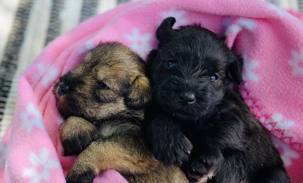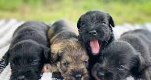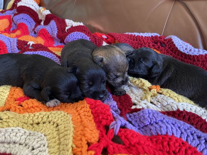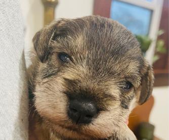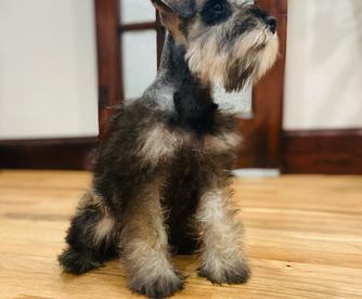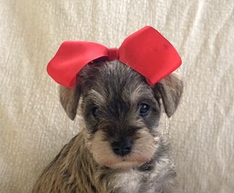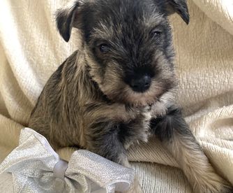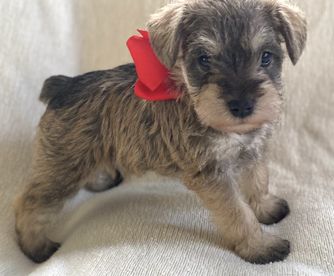 Our puppies include salt and pepper, black and silver, and black. Colors will vary depending on the parent dogs.