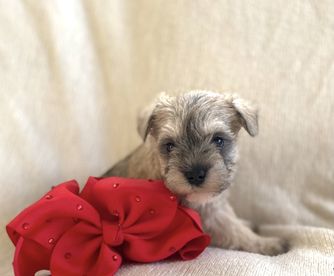 I'm Shannon T., the breeder behind Shannon's Miniature Schnauzers located in El Reno, OK. We raise all our dog babies in our home. All our puppies come with: Lots of socialization, a health guarantee, a vet check, up to date vaccinations, tail/dew claws removed, AKC pet registration (full registration potentially available), and a puppy pack. Depending on where you live, we may be able to travel to meet you with your puppy. Please discuss this with me before putting down the deposit.