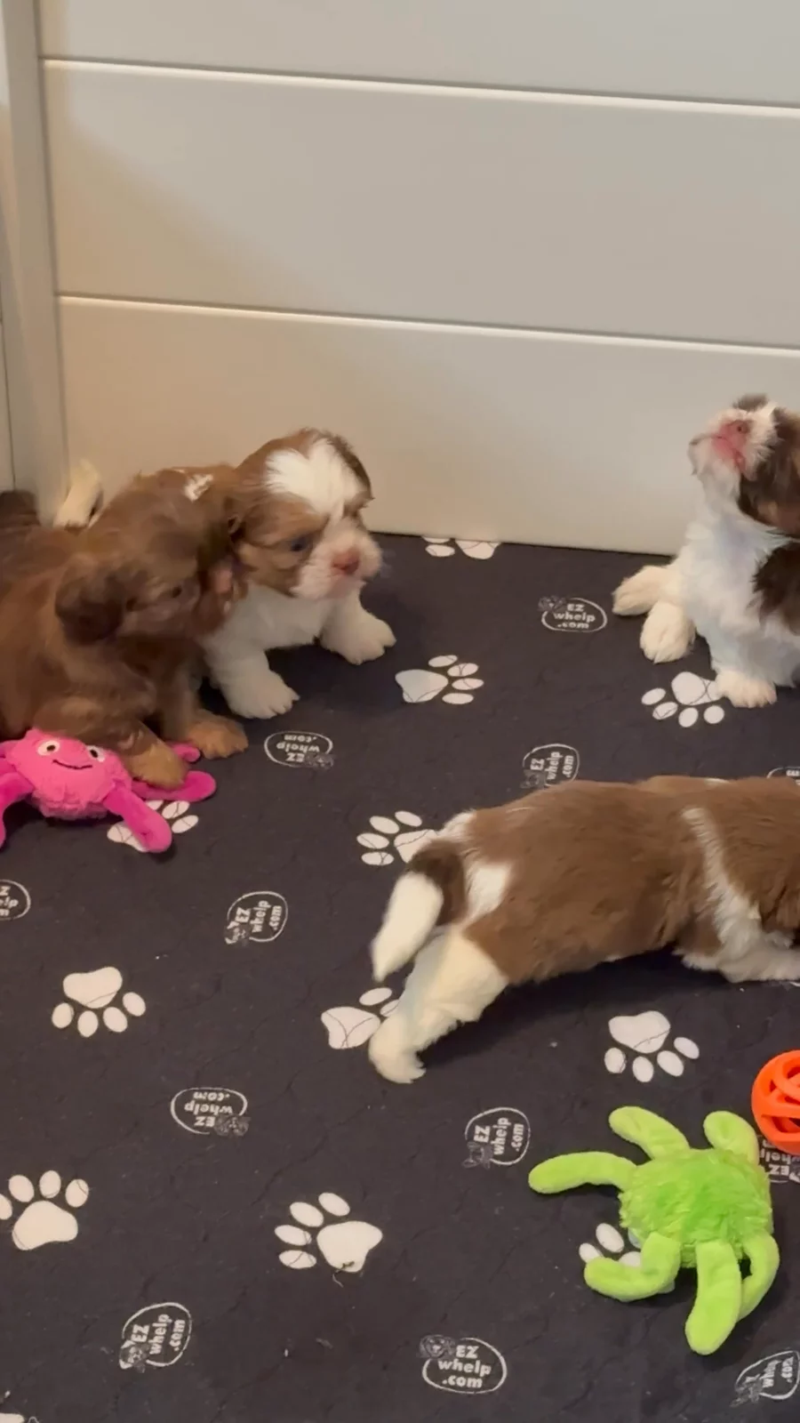 *AKC Registration Papers with Full Registration  * Lifetime Breeder Support * 1 Year Congenital Health Guarantee – we back our puppies! * Veterinarian Health Check on each puppy from the vet * Vaccines up to date from veterinary office * Dewormed up to date, negative fecal test. * Puppies have been raised & socialized in home among our family, loved beyond measure, and raised in a clean living environment. * Puppies go home with Blue Buffalo puppy chicken, dry dog food. * Puppies have been using potty pads, but will require ongoing training and supervision at this age. * Puppies have been introduced to car rides at an early age to help prevent car sickness and anxieties later in life. * Puppies have been introduced to grooming and grooming tools to help acclimate them weekly. * Puppies nails are trimmed weekly, multiple times before they go home. * Puppies receive sanitary trims before they go home. * Puppies have been introduced and socialized to other dogs. * Puppies have been exposed to toys and will take familiar toys home with them. * Puppies will take a blanket that smells like mom and littermates home with you. * Puppies have been exposed to a variety of sights, sounds, textures, and experiences during the critical early developmental stage. * Lifetime Welcome Back Policy. Shannon’s Shih Tzu puppies and dogs are always welcome back home here, at any point in their lives if you cannot keep them (no refunds but they can come home, never to a shelter!