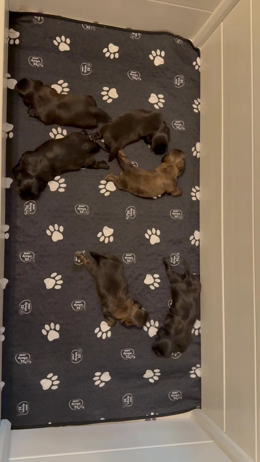 Our puppies include black and tan, black, and liver. Colors will vary depending on the parent dogs.