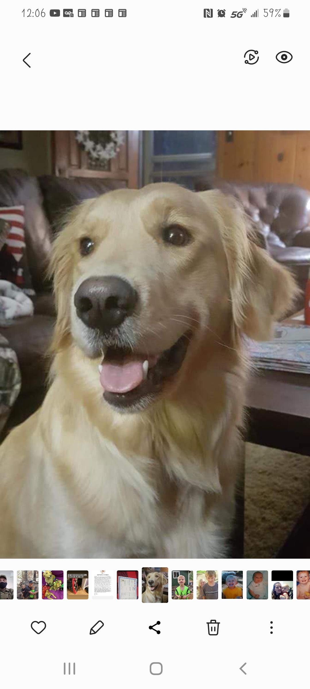 Vada is a female Golden Retriever. Carefully selected as a great representative of her breed, Sharee decided to make her part of their program. Sharee has passed Good Dog’s screening process, which involved a review of their breeding practices, environment, and the mental and physical health of their dogs.