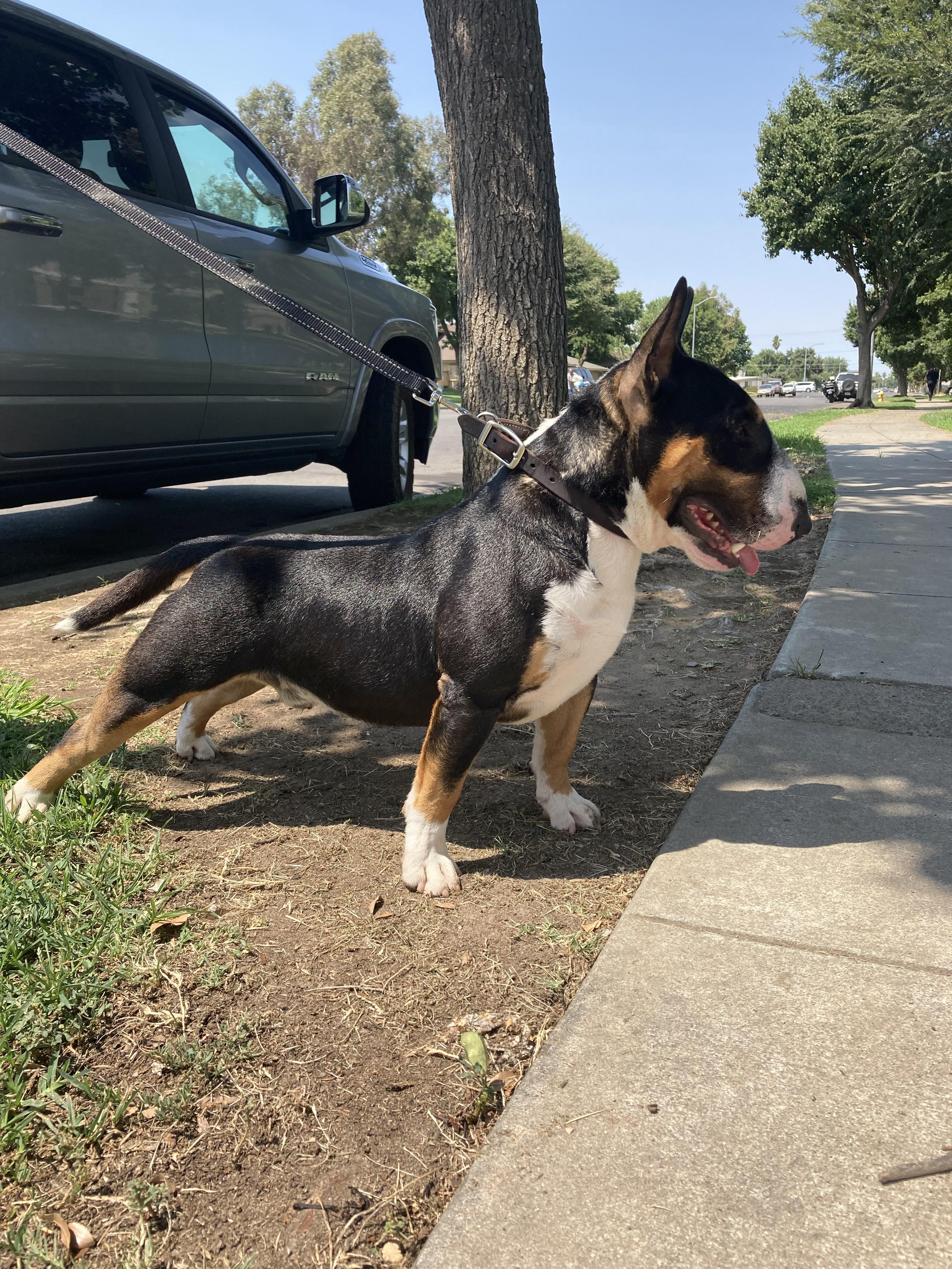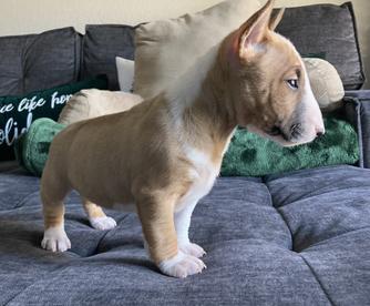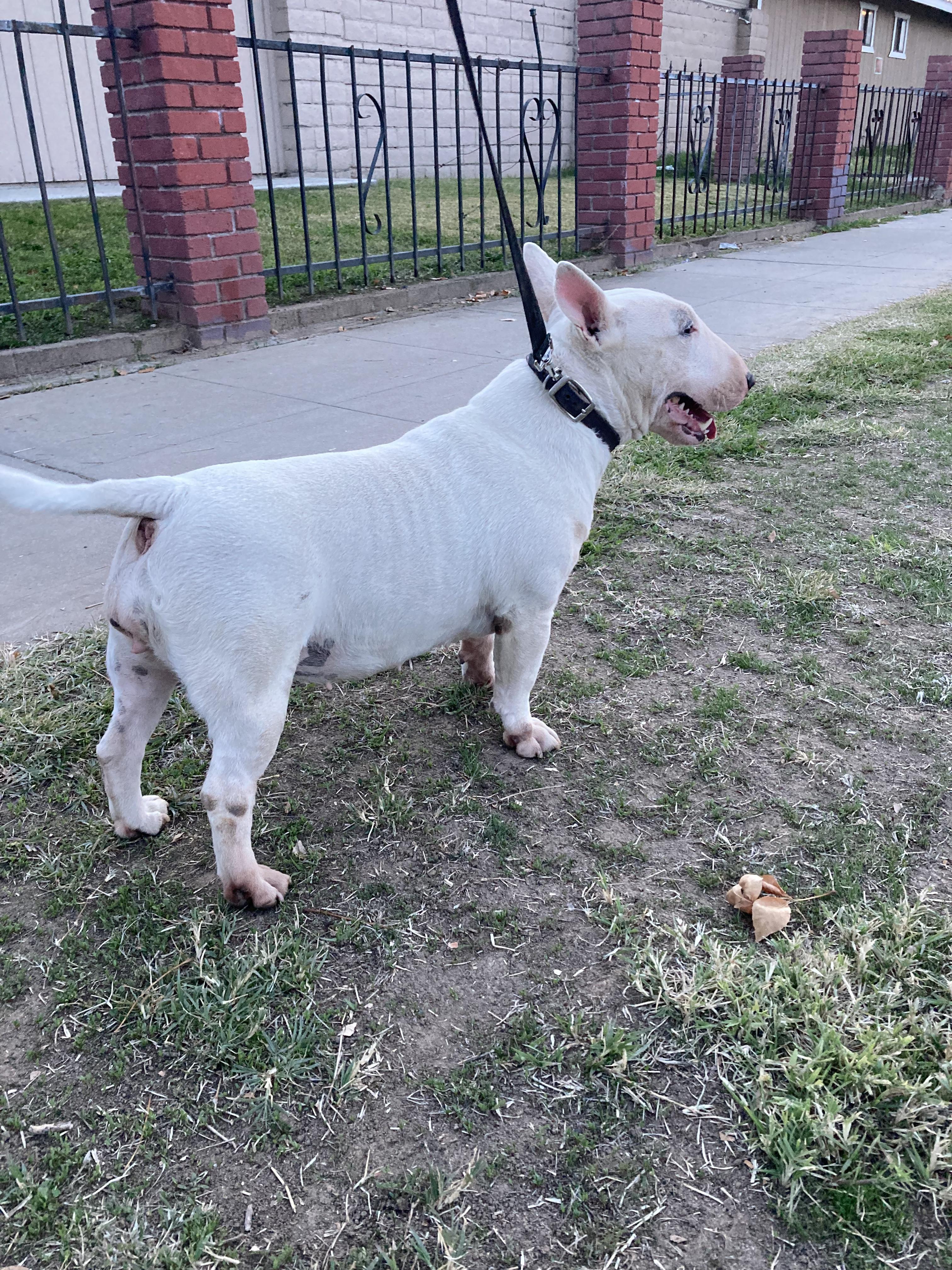 Fahrenheit is a male Miniature Bull Terrier. Carefully selected as a great representative of his breed, Jesus decided to make him part of their program. Jesus has passed Good Dog’s screening process, which involved a review of their breeding practices, environment, and the mental and physical health of their dogs.