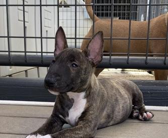 Vacilon is a male Miniature Bull Terrier. Carefully selected as a great representative of his breed, Jesus decided to make him part of their program. Jesus has passed Good Dog’s screening process, which involved a review of their breeding practices, environment, and the mental and physical health of their dogs.