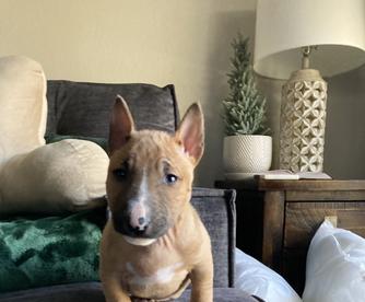 Ash is a female Miniature Bull Terrier. Carefully selected as a great representative of her breed, Jesus decided to make her part of their program. Jesus has passed Good Dog’s screening process, which involved a review of their breeding practices, environment, and the mental and physical health of their dogs.