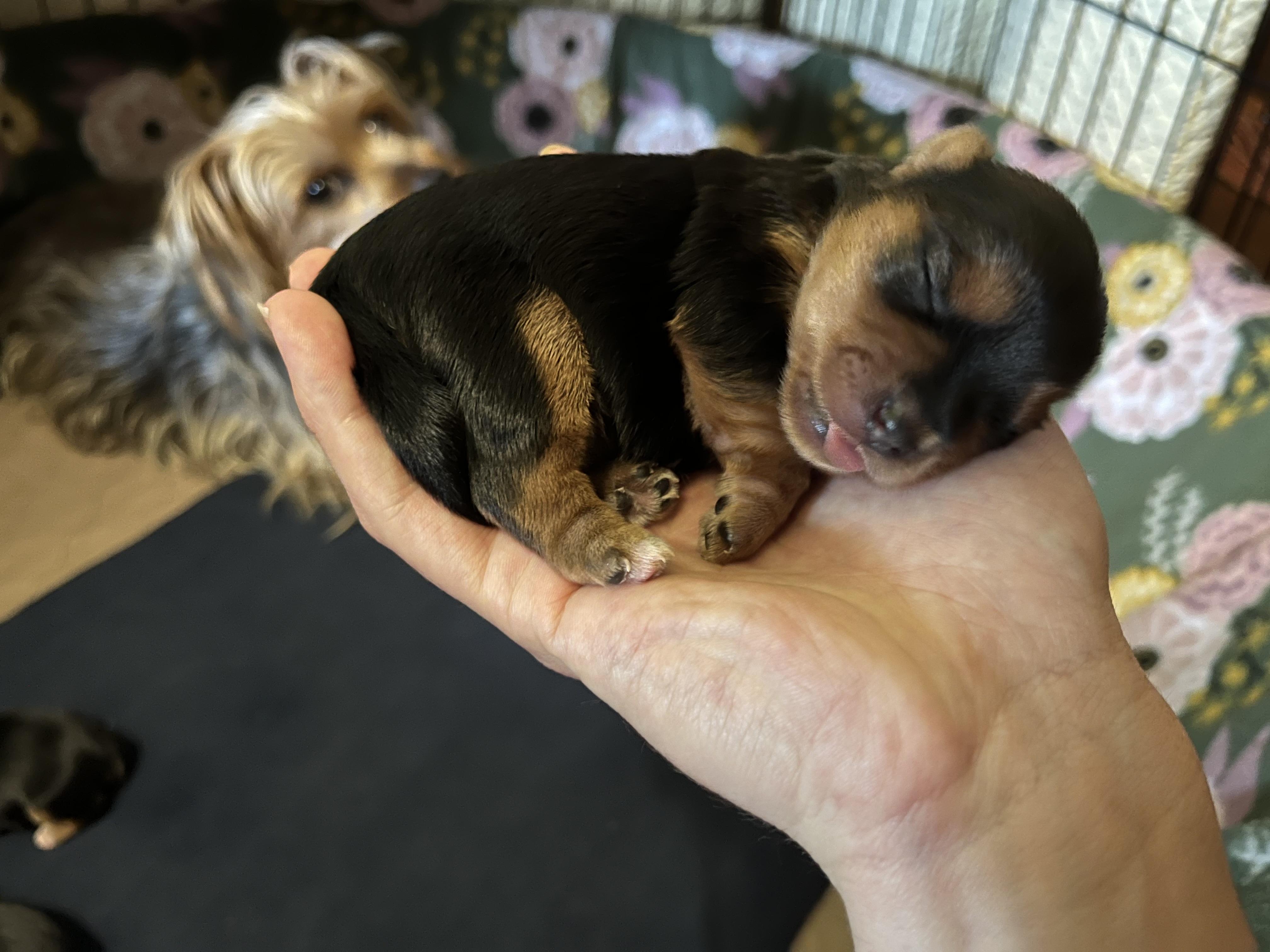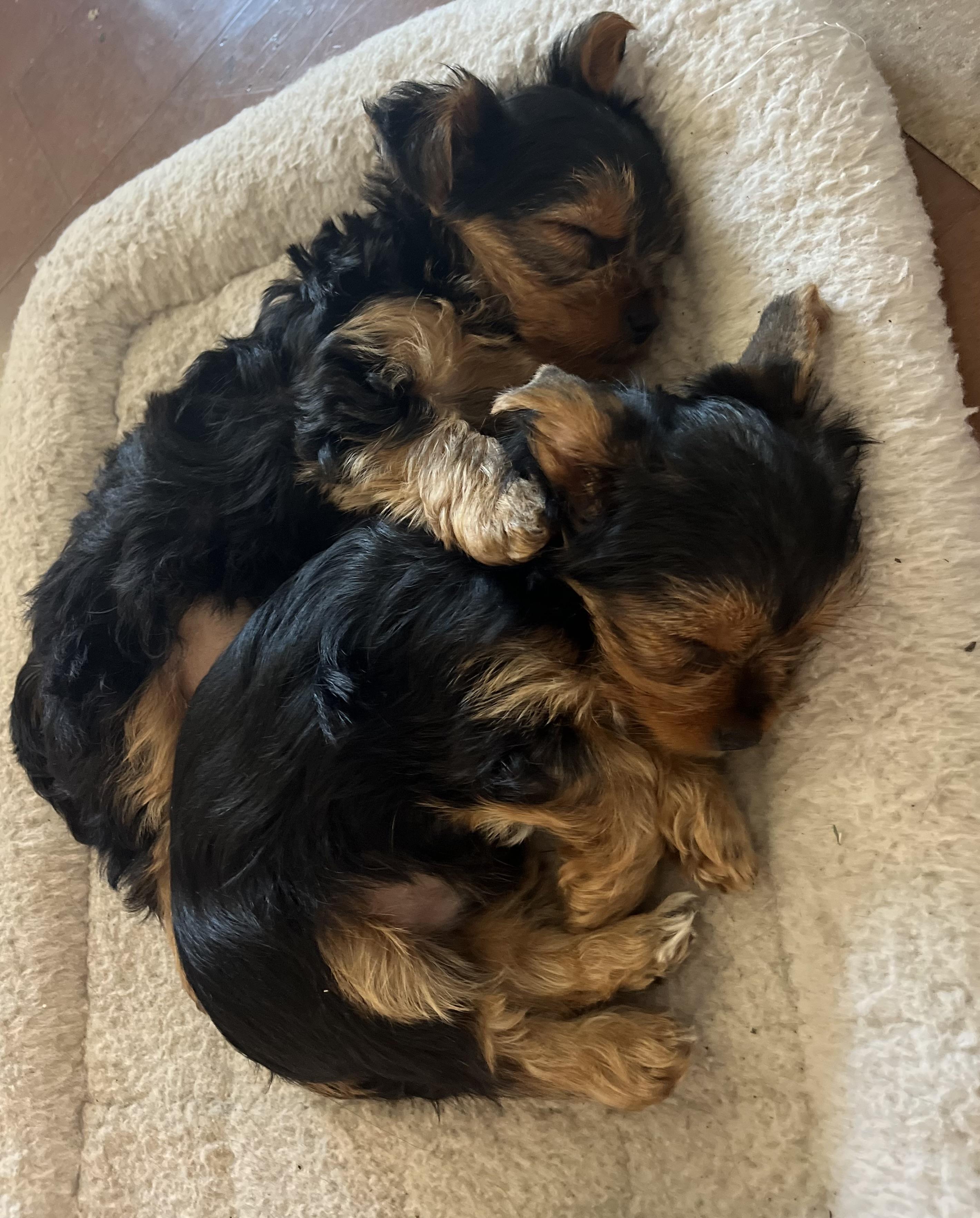 We bought our first male in 2019 with the idea of maybe one day having him mate with another Yorkie. That idea soon grew into more than just a concept. In 2021 after looking through the AKC marketplace to look for a potential bride a serendipitous situation fell into our lap. We came in contact with a 30 year veteran and we purchased a darling Dam from her. She has been giving us guidance and apprenticeship all along the way. In September 2021 we had our first litter of five!