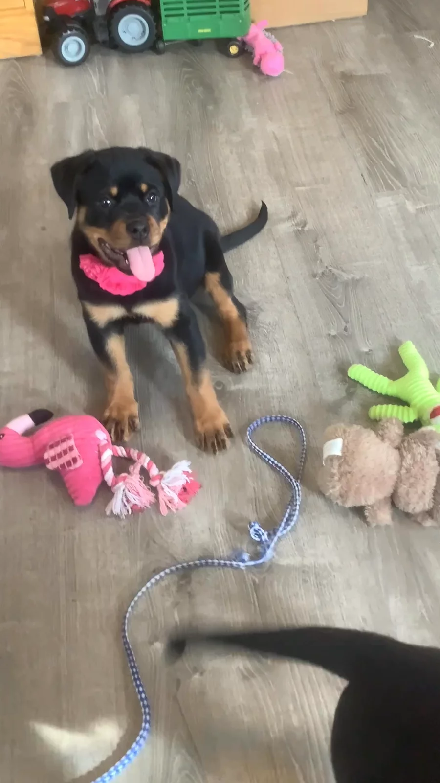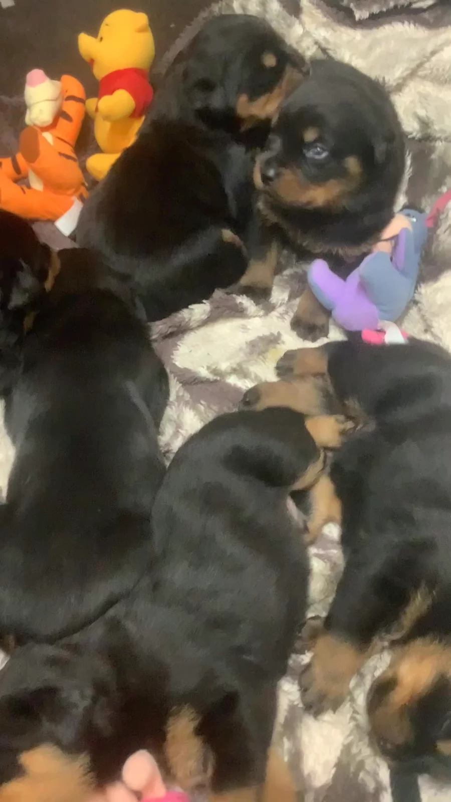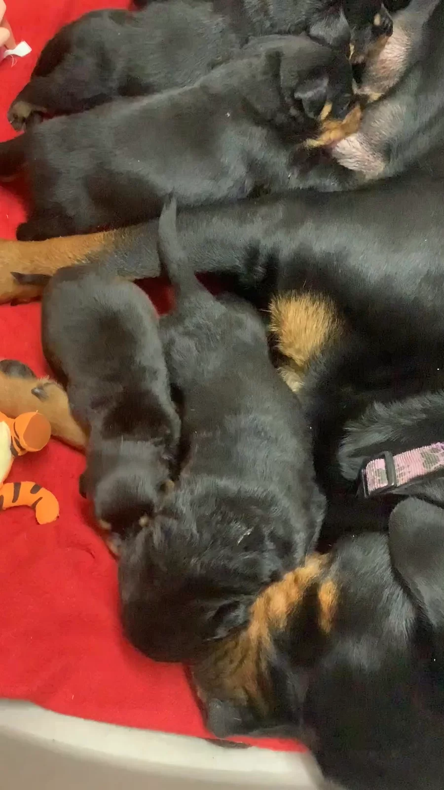 Jerry and Katie were great to work with . They were very knowledgeable and responsive. The kennels were very clean. They supplied us with a binder filled with pictures, vet records, and family tree . We couldn’t ask for anything more. Vuk is a beautiful puppy . He’s smart , very good temperament like his parents , very trainable. He loves to tug and get his naps in! If anyone is looking for a Rottie and want a great experience, then look no further, Sharp ridge is your place!